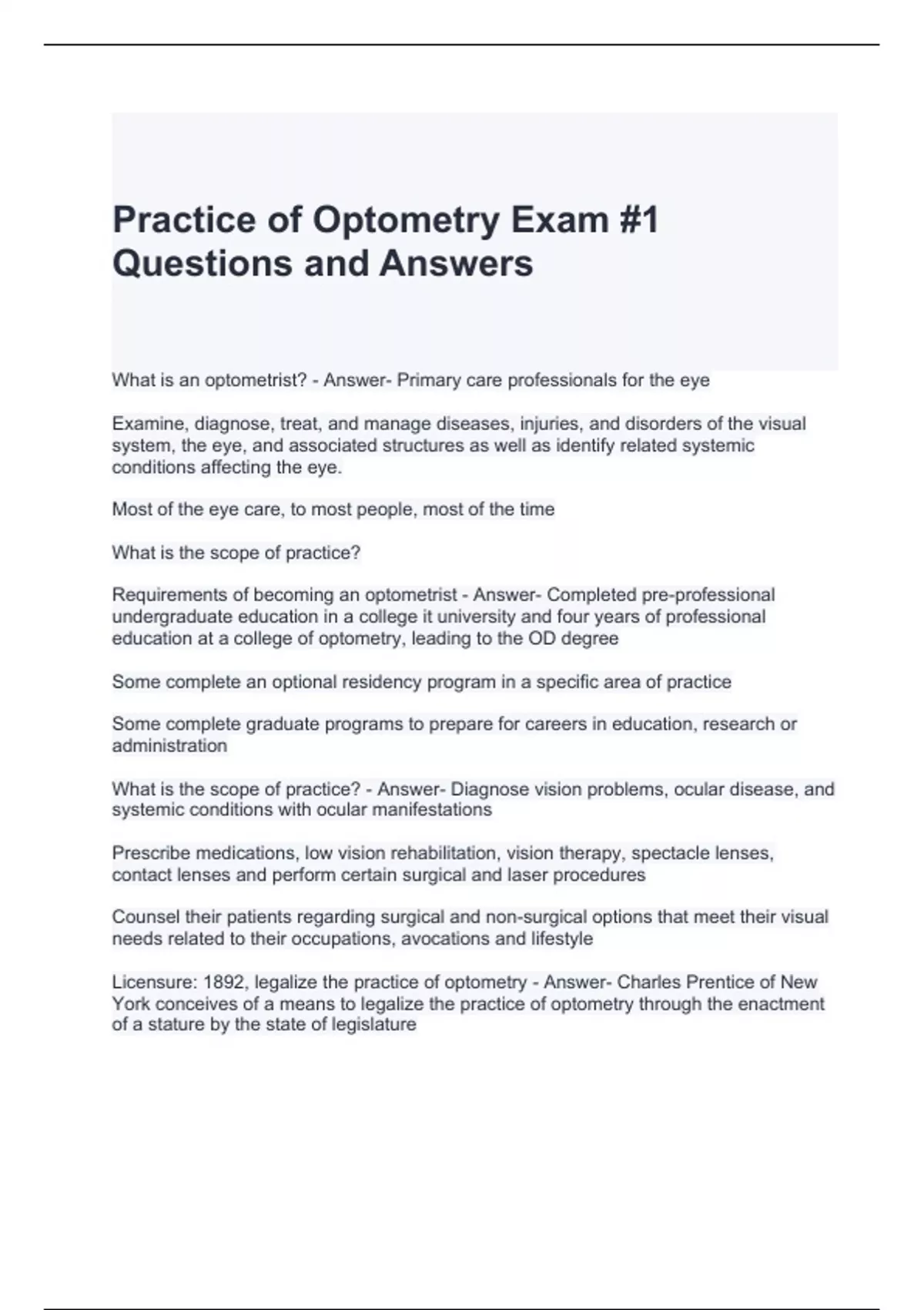 1 Exam (elaborations) Practice of Optometry Exam #1 Questions and Answers -Graded A 2 Exam (elaborations) Optometry-Exam 1 Questions and Answers 2024 -Graded A 3 Exam (elaborations) Optometry Law Exam California Questions and Answers 100% correct Answers 4 Exam (elaborations) Optometry California Law Exam with 100% correct Answers 5 Exam (elabo