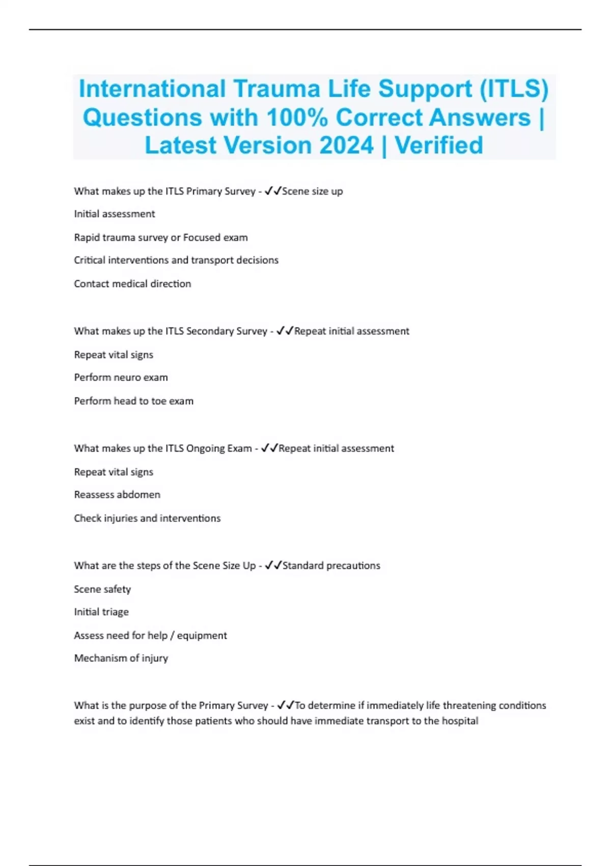ITLS Bundled Resources with Complete Solution | Expert Verified 2024/2025 | Guaranteed Success