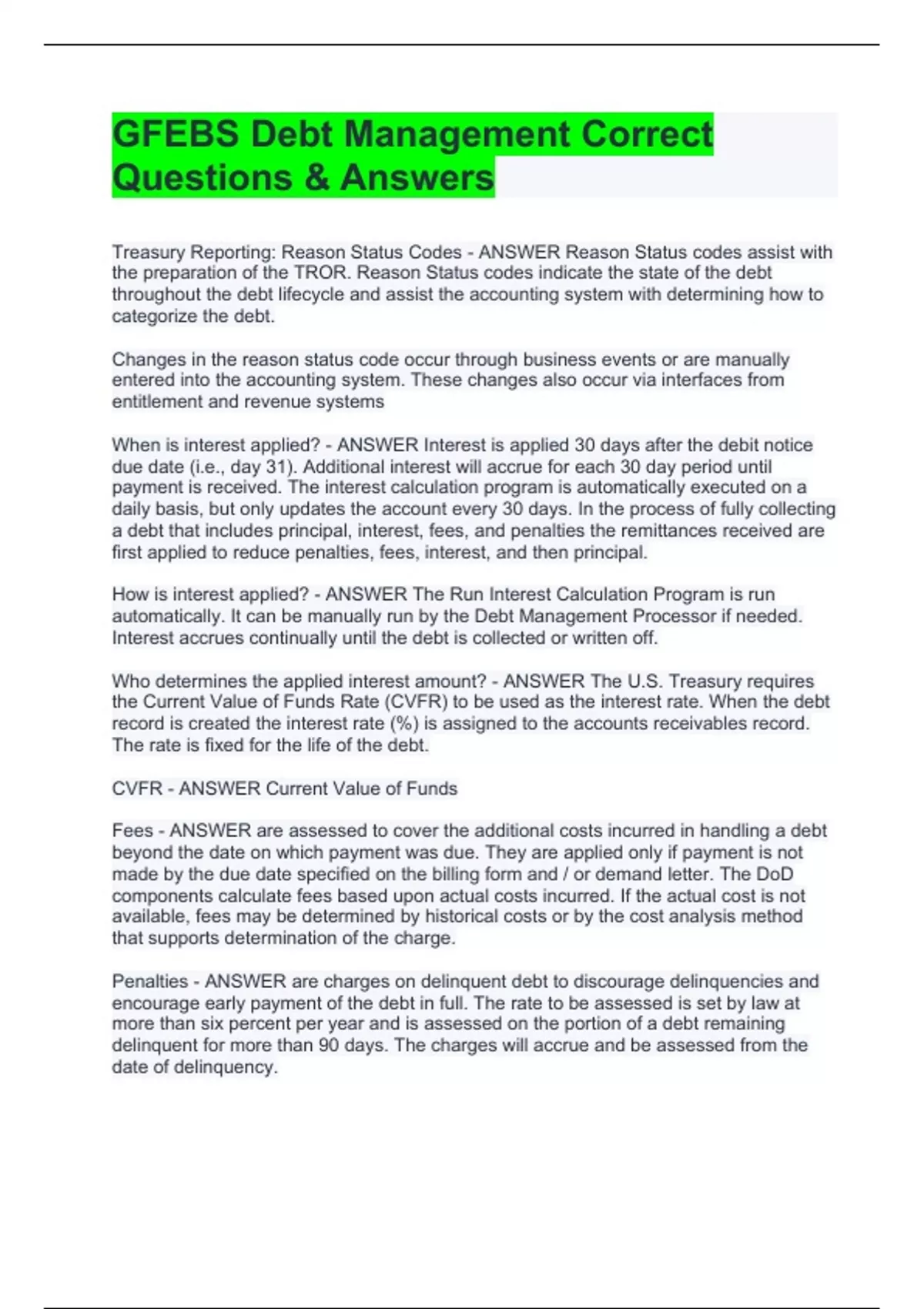 PACKAGE DEAL FOR:GFEBS Debt Management Correct Questions & AnswersPACKAGE DEAL FOR:GFEBS Debt Management Correct Questions & AnswersPACKAGE DEAL FOR:GFEBS Debt Management Correct Questions & AnswersPACKAGE DEAL FOR:GFEBS Debt Management Correct Questions & AnswersPACKAGE DEAL FOR:GFEBS Debt Management Correct Questions & Answers