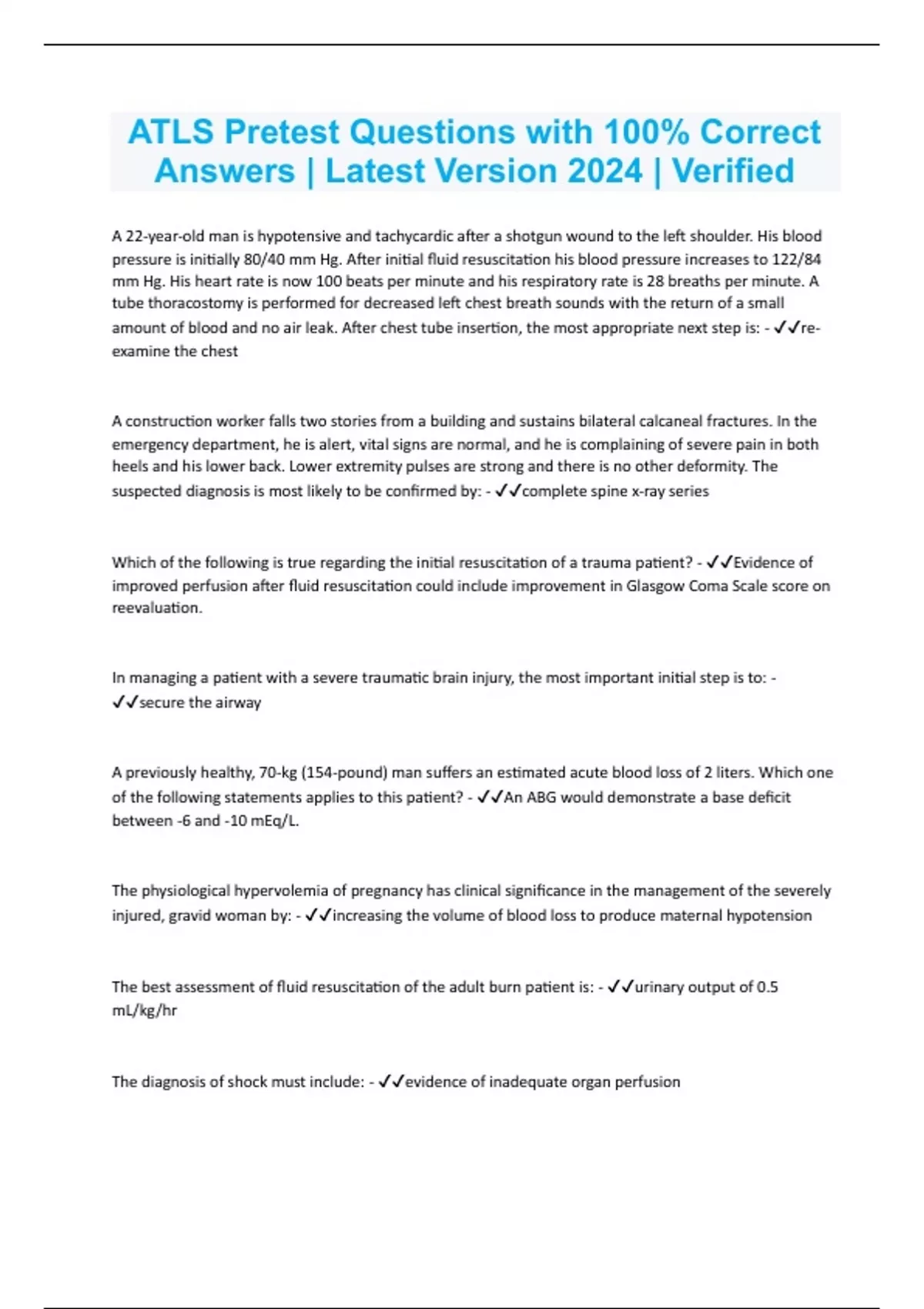 ATLS Pre-Test 2024 Questions with 100% Correct Answers | Latest Version | Verified