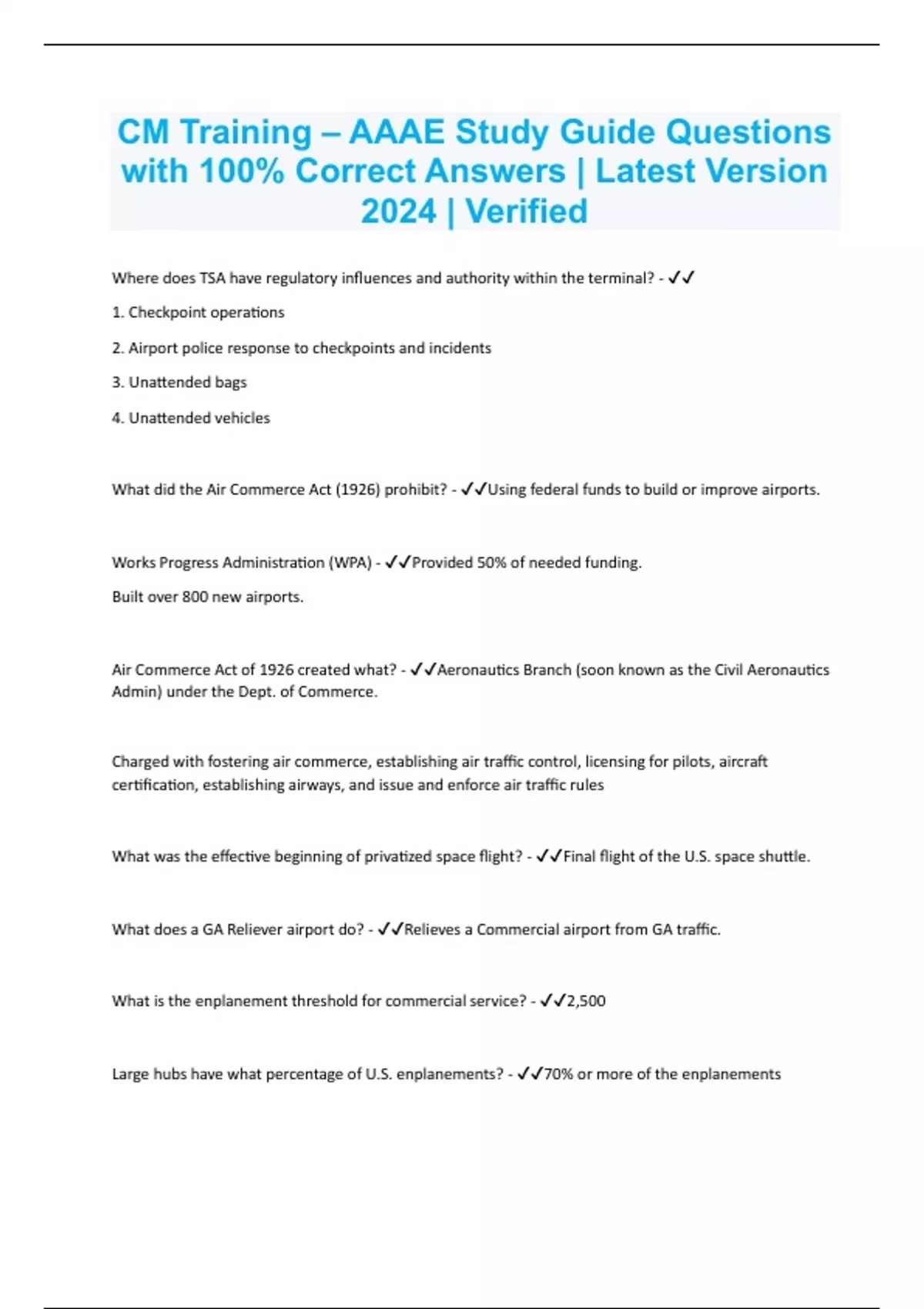 CM Training – AAAE Study Guide Questions with 100% Correct Answers | Latest Version 2024 | Verified
