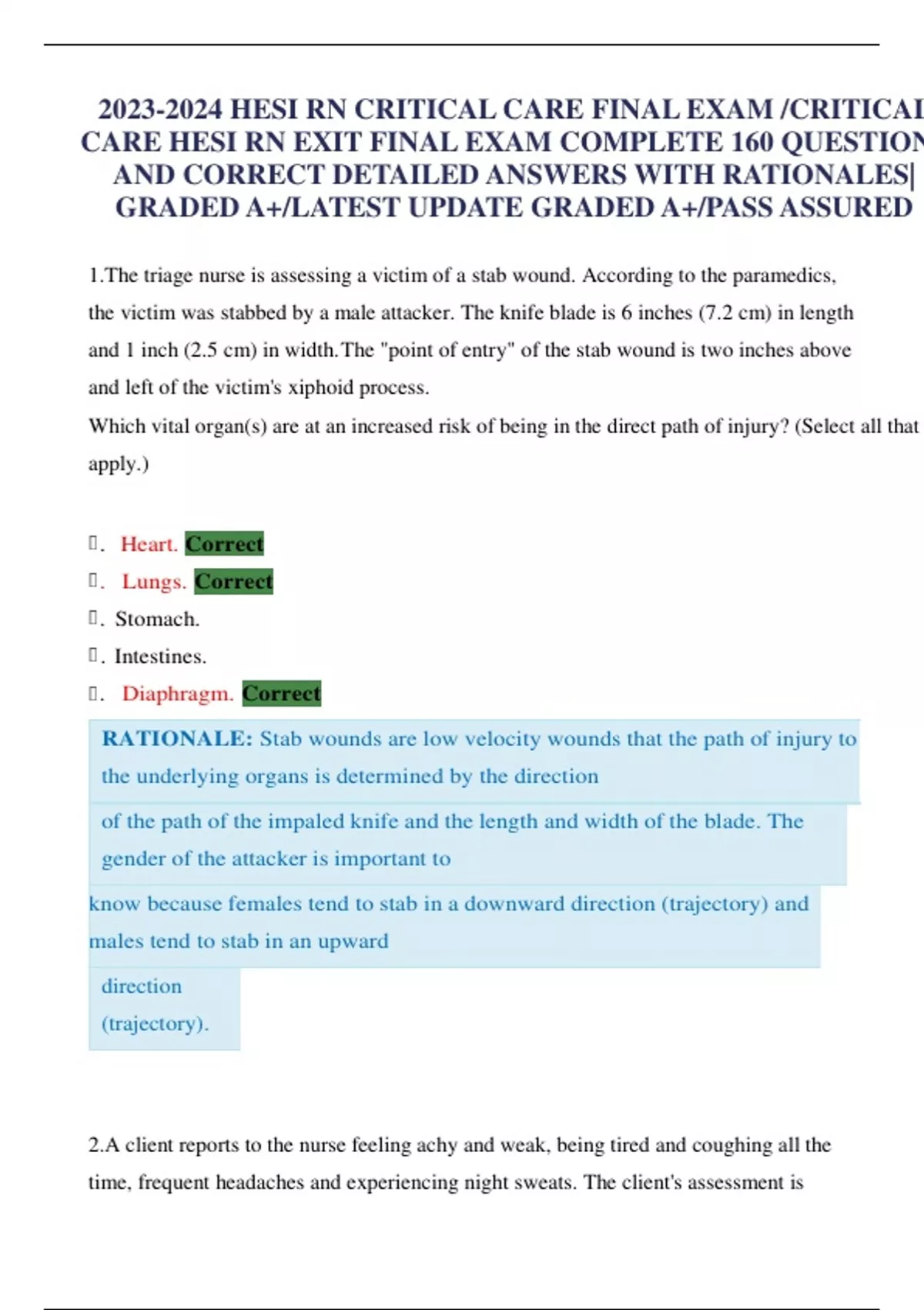 HESI RN EXIT BUNDLED EXAMS 2024/ACTUAL EXAMS WITH CORRECT DETAILED ANSWERS/PASS GUARANTEE