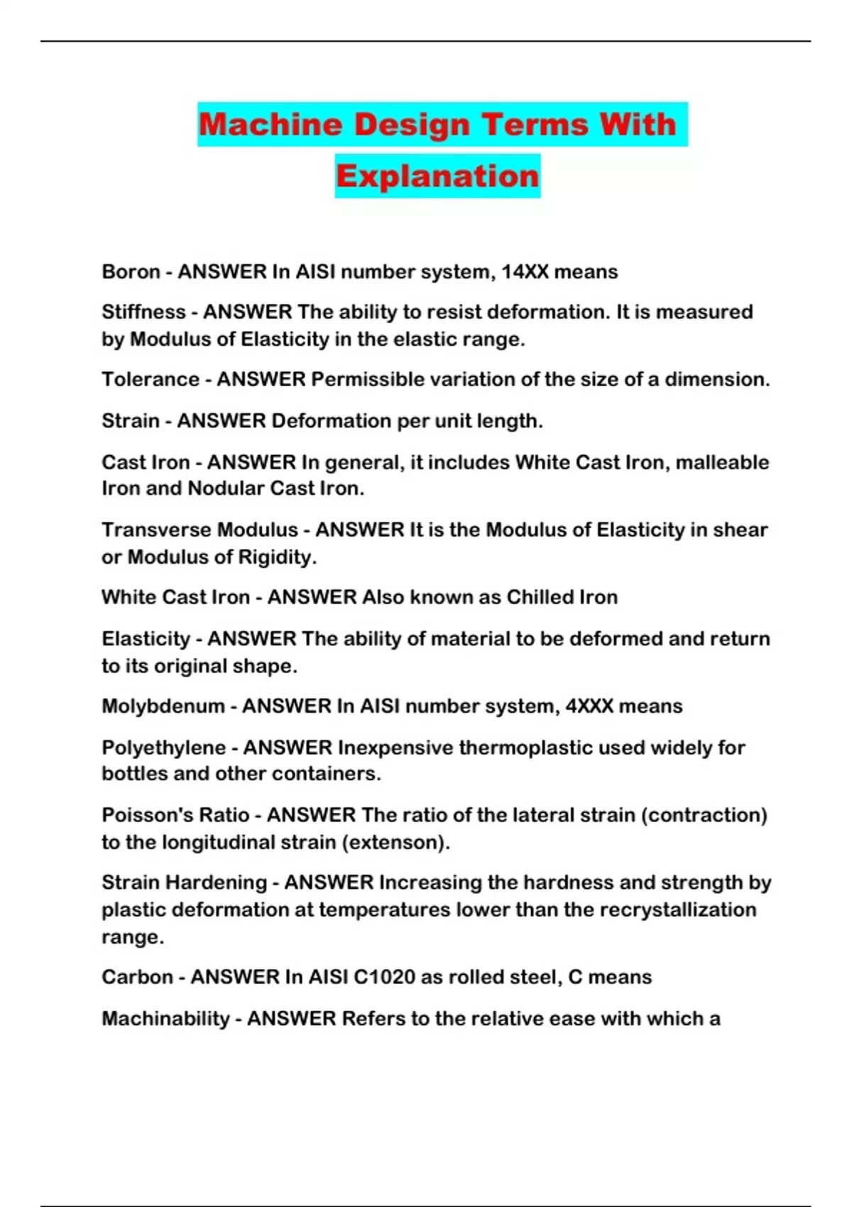 MACHINE DESIGN TEST 4 WITH QUESTIONS AND ANSWERS