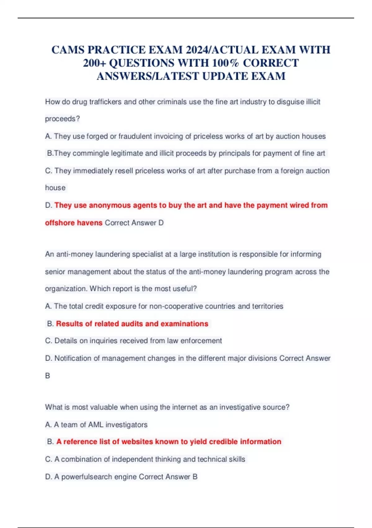 PACKAGE BUNDLE FOR CAMS EXAMS 2024| ACTUAL EXAMS| QUESTIONS WITH 100% CORRECT VERIFIED AND DETAILED ANSWERS|WITH LATEST UPDATE