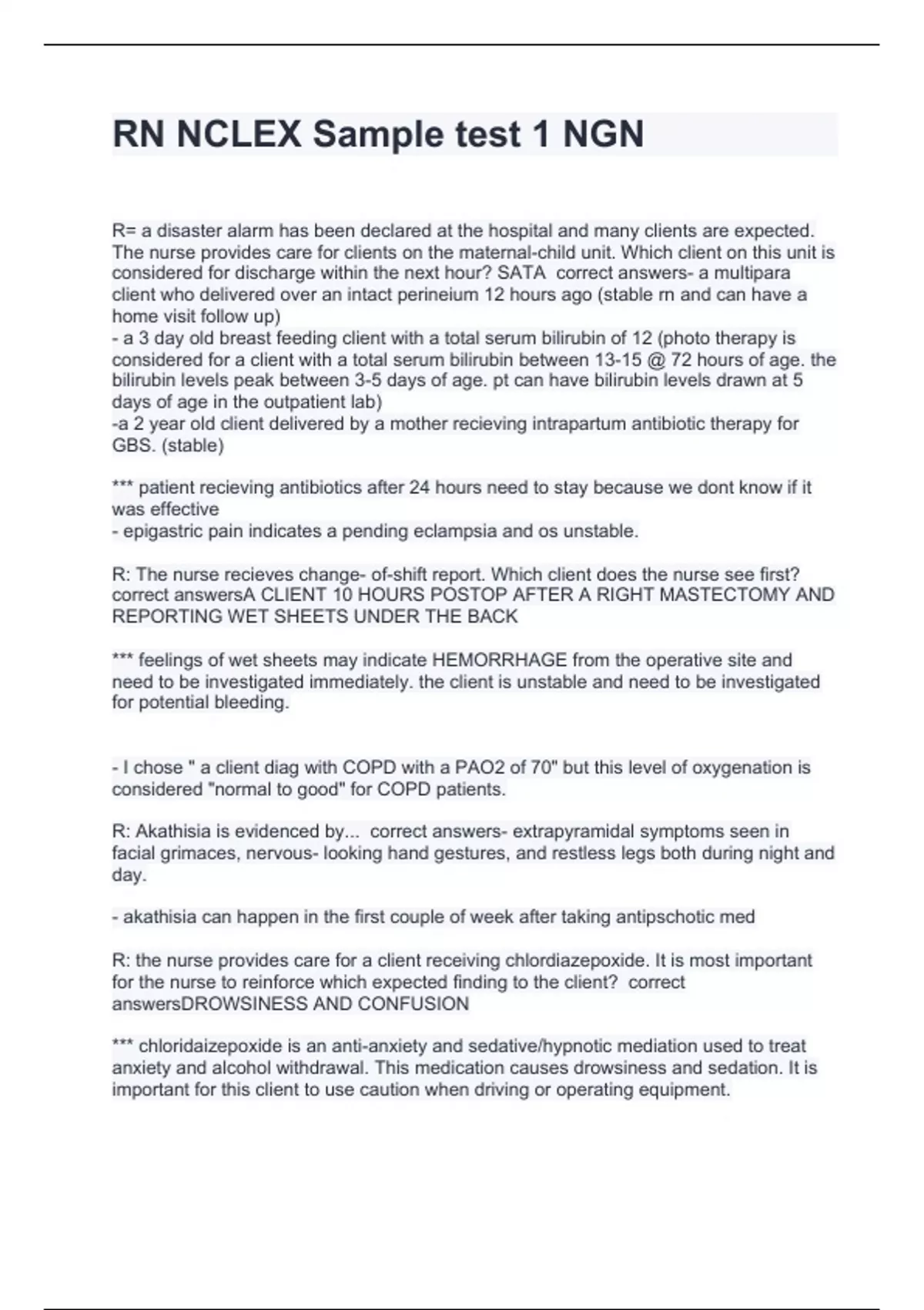 RN NCLEX Sample bundled exams NGN with 100% correct answers 2024