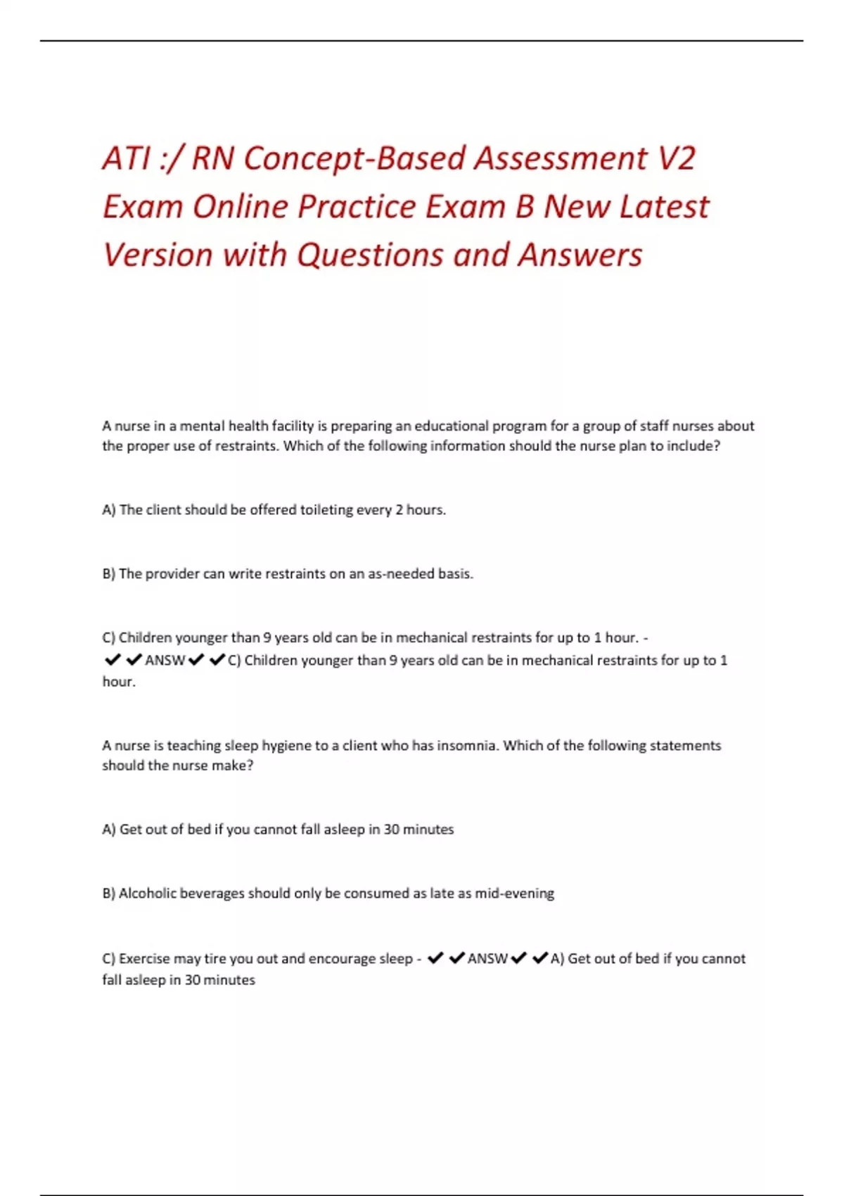 ATI :/ RN Concept-Based Assessment V2 Exam Online Practice Exam B New Latest Version with Questions and Answer