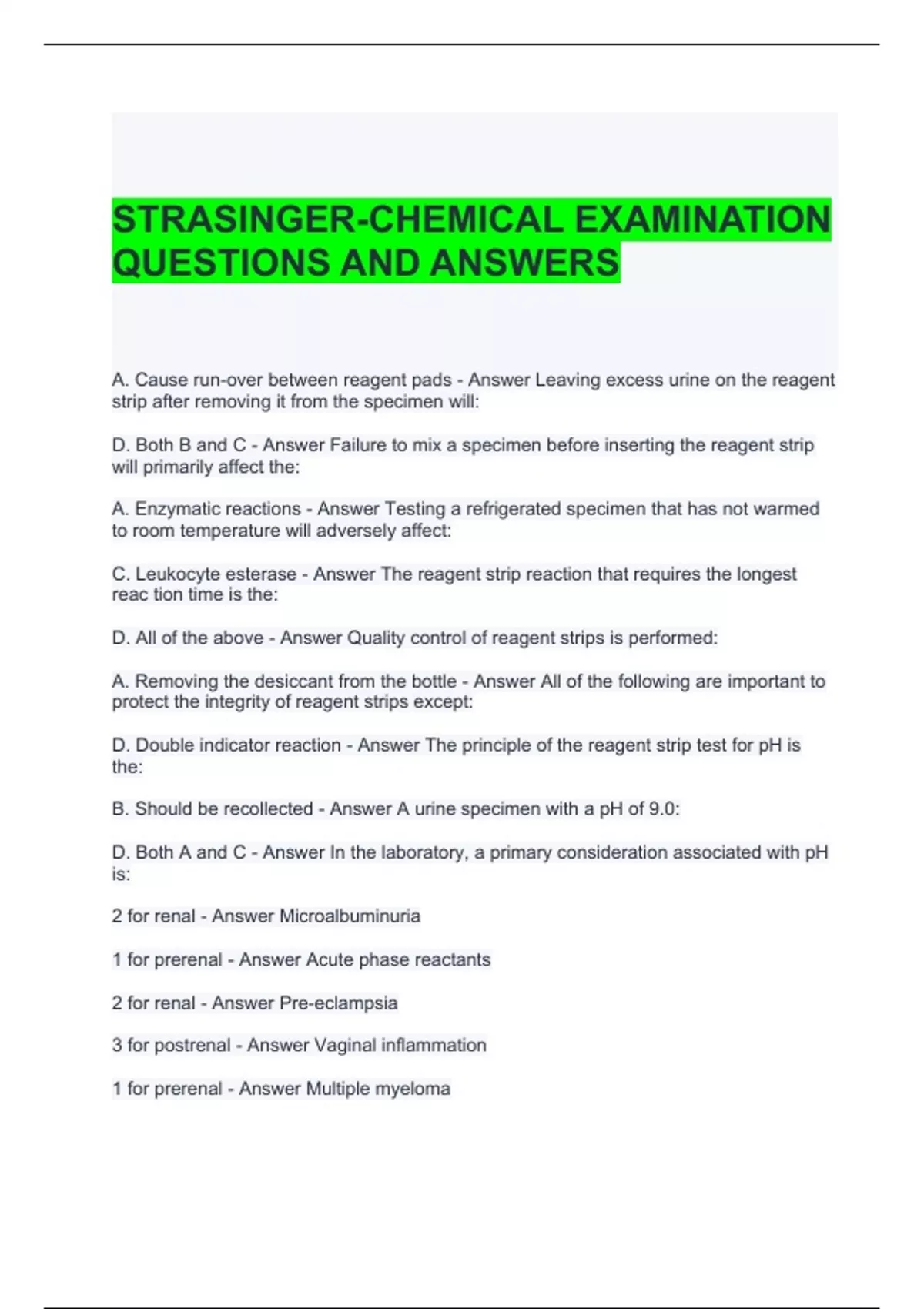 1 Exam (elaborations) STRASINGER-CHEMICAL EXAMINATION QUESTIONS AND ANSWERS 2 Exam (elaborations) STRASINGER Study Questions COMPLETE with correct Answers (Graded A) 3 Exam (elaborations) Strasinger Study Questions and Answers 4 Exam (elaborations) STRASINGER Study Questions and Answers (Graded A) 5 Exam (elaborations) STRASINGER REVIEW QUESTIO