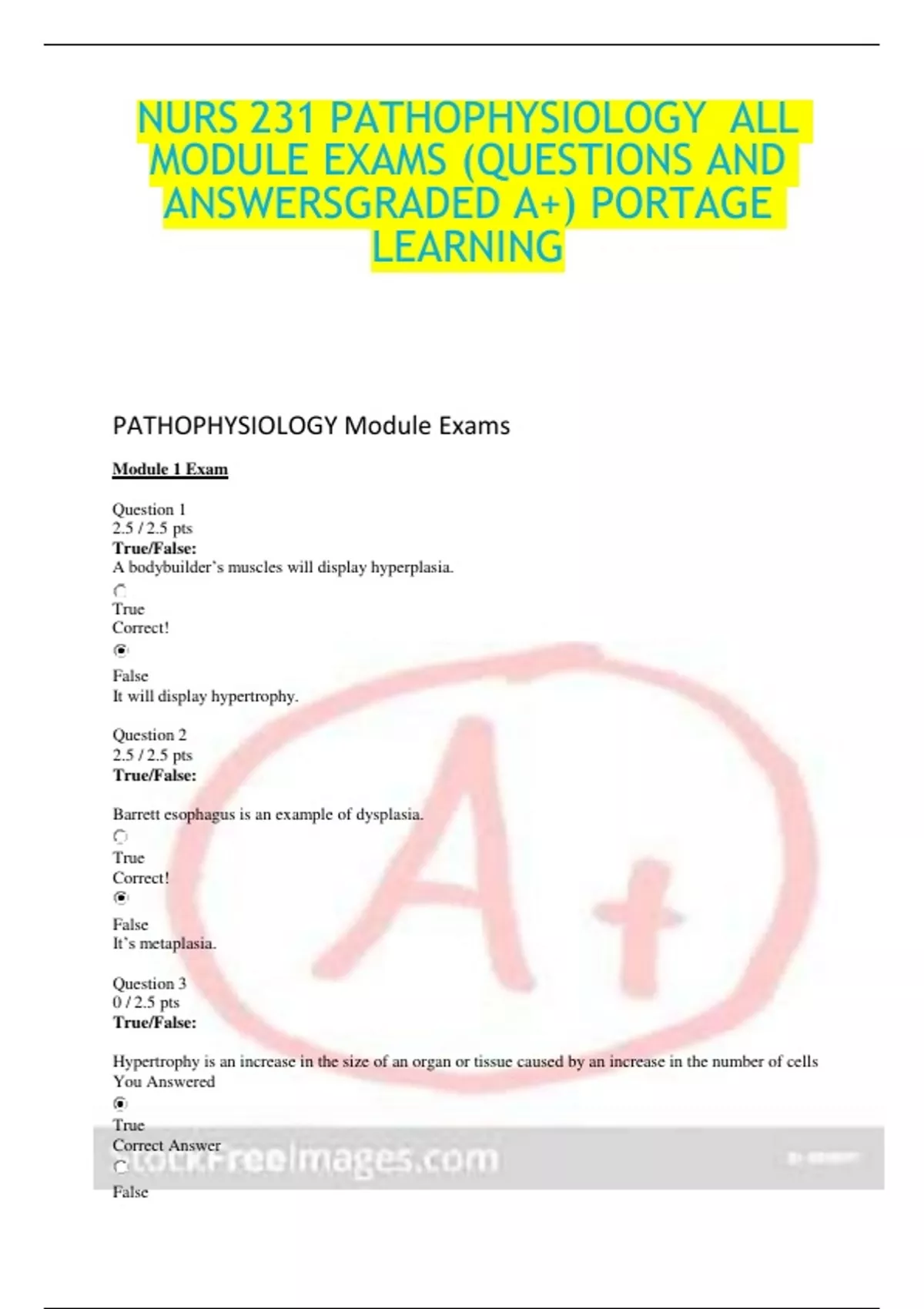 NURS 231 2024 Pathophysiology Final Exams Portage Learning Correct Q & A.