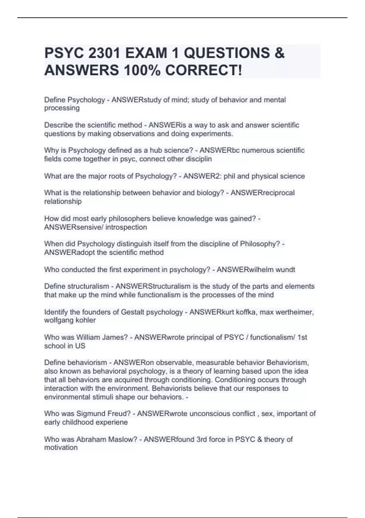 EXAM BUNDLE PSYC 2301 (COMPLETE PACKAGE) Questions & Answers 100% Correct!