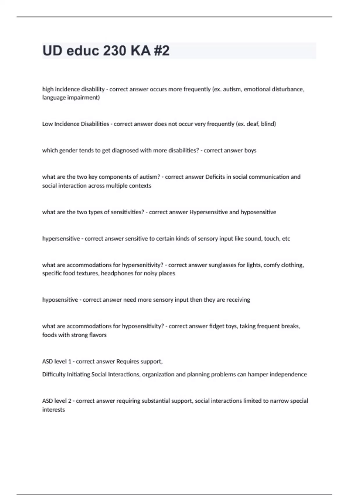 EDUC 230 Final Exam Part 1 - Learning Disabilities well answered