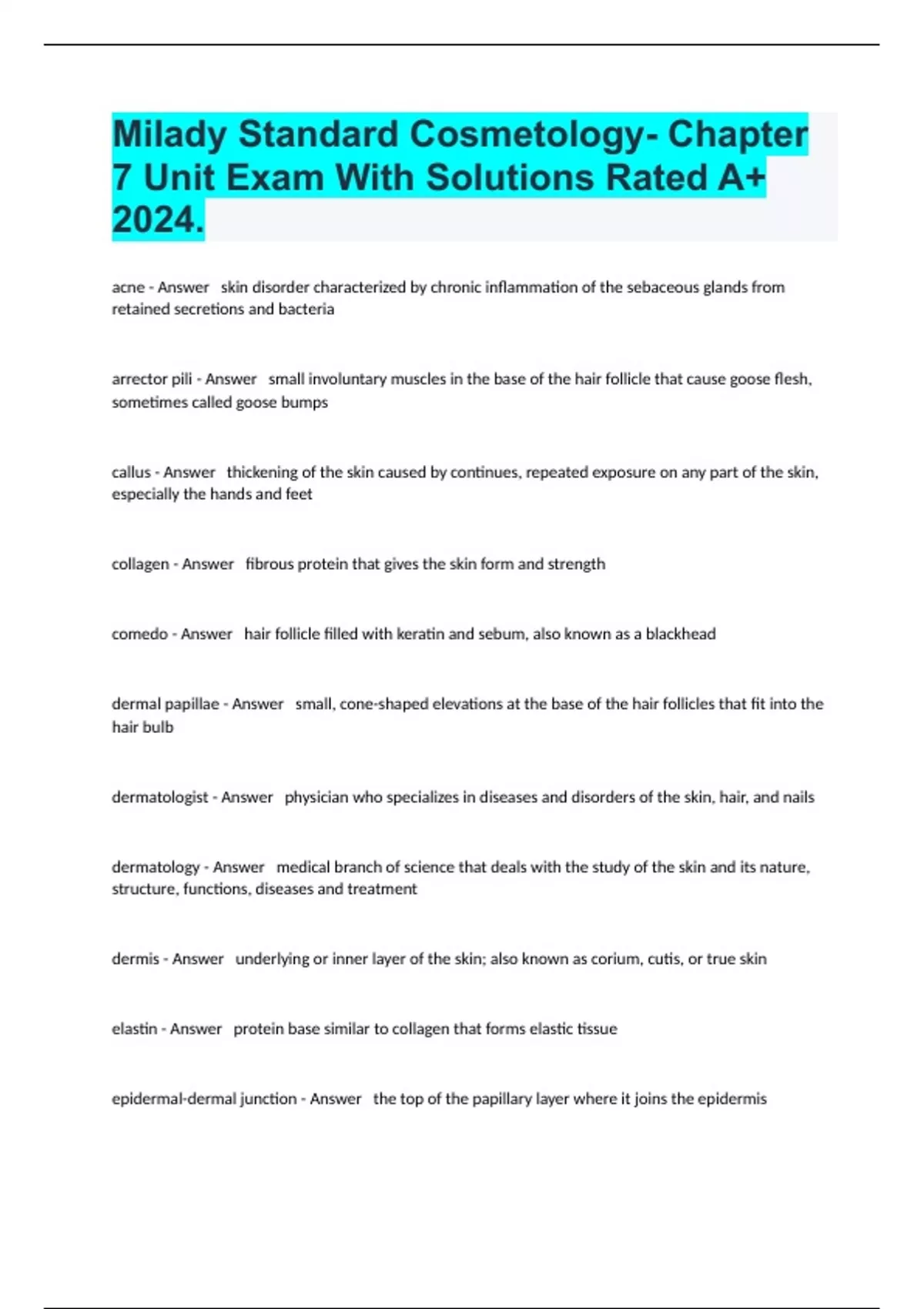 1 Exam (elaborations) Milady Cosmetology Chapter 3 Final Exam Solved Correctly 2024. 2 Exam (elaborations) Milady standard chapter 16 vocabulary Cosmetology Training Exam With Complete Solutions 2024. 3 Exam (elaborations) Milady Standard Cosmetology Chapter 6 Study Guide Exam Solved Correctly 2024. 4 Exam (elaborations) Milady standard cosmetol