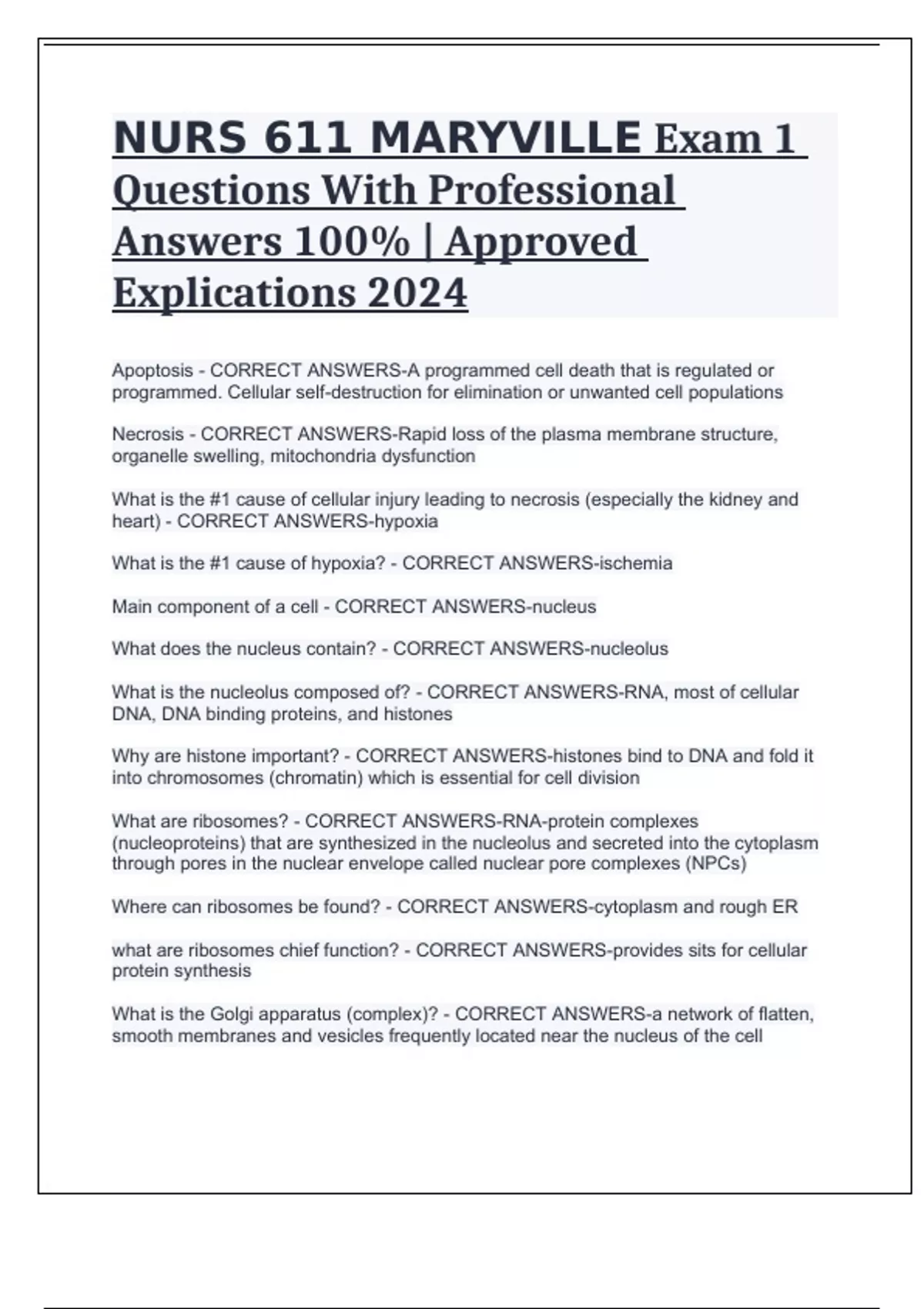 NURS 611 MARYVILLE Exam 1 Questions With Professional Answers 100% | Approved Explications 2024 NURS 611 Advanced Pathophysiology Exam 1 Questions With Professional Answers 100% | Approved Explications 2024 NURS 611 PATHO MARYVILLE Test 1 Exam Questions With Professional Answers 100% | Approved Explications 2024 NURS 611 Final Exam Questions With P