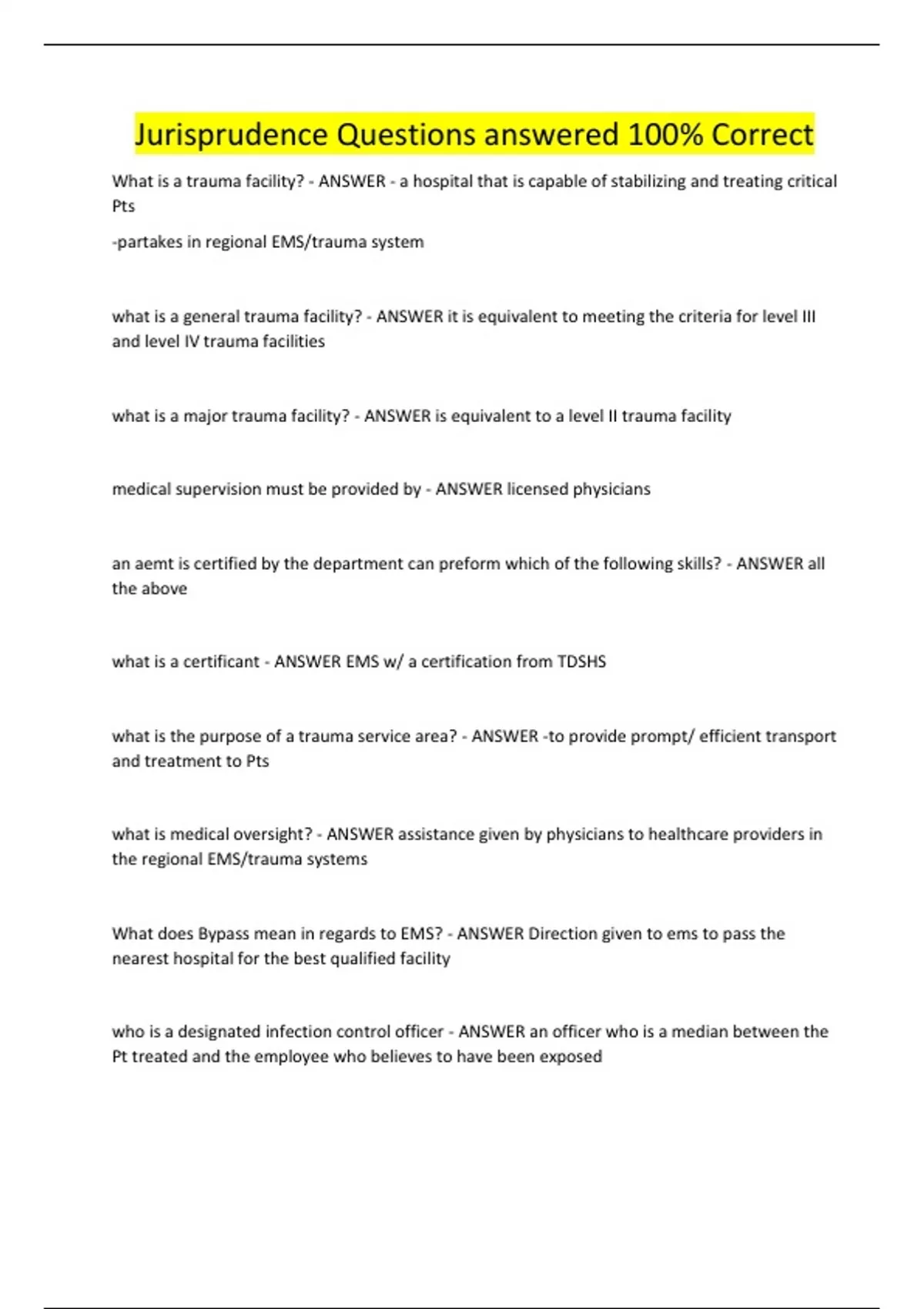 Jurisprudence Study Guide Questions answered 100% Correc