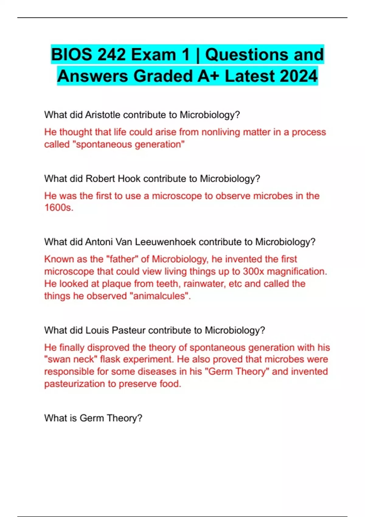 Bios 242 Exam 1 Questions and Answers Graded A+ Latest 2024