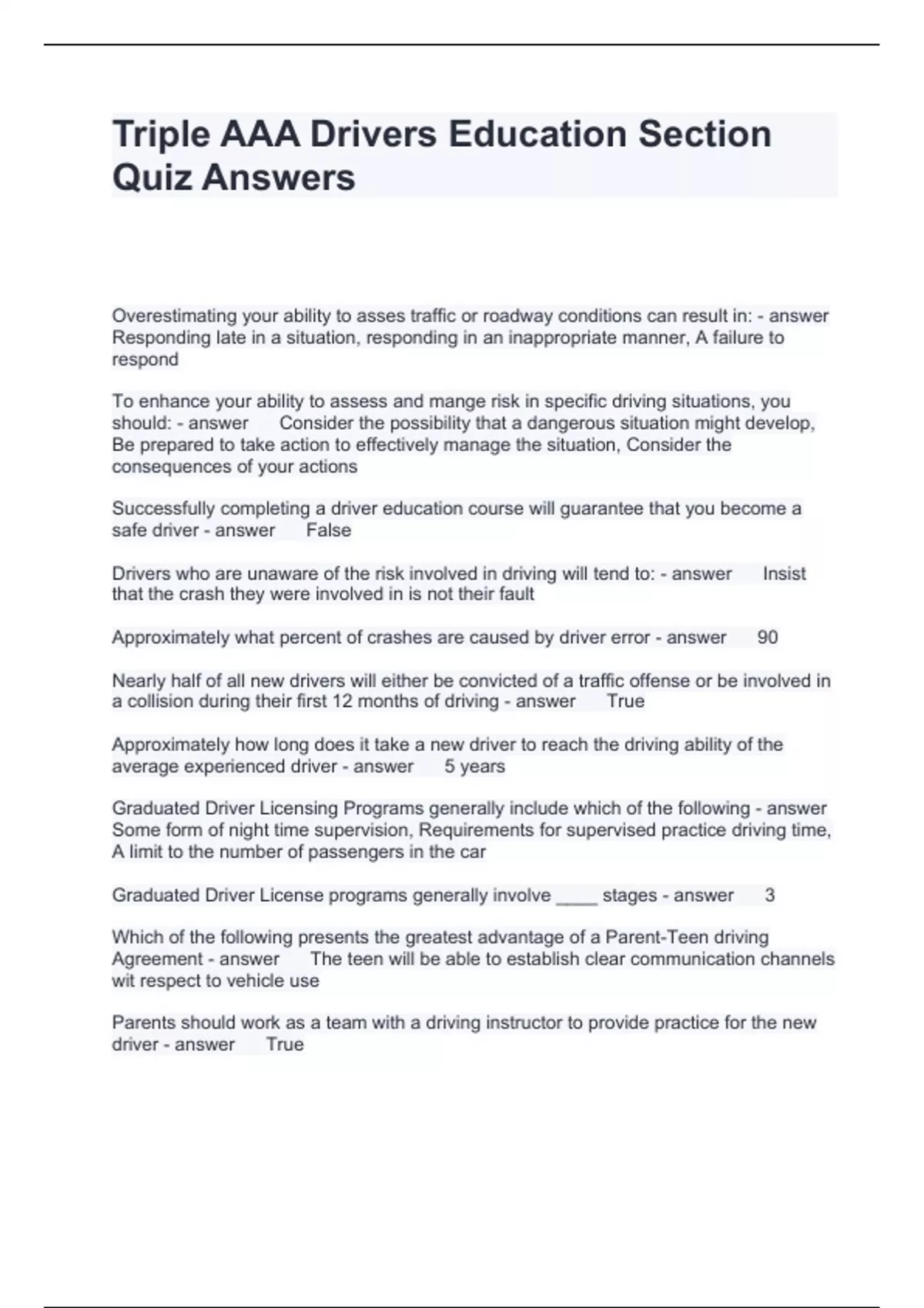 Exam (elaborations) Ohio AAA Drivers Ed Final Study Guide Questions with correct Answers 2024 Exam (elaborations) How to Drive- AAA Driving School- Chapters 1-4 Questions and Answers 2024 Exam (elaborations) Drivers Ed AAA book answers Study Questions and Answers 100% Verified Exam (elaborations) AAA QUESTIONS WITH SOLUTIONS 2024 Exam (ela