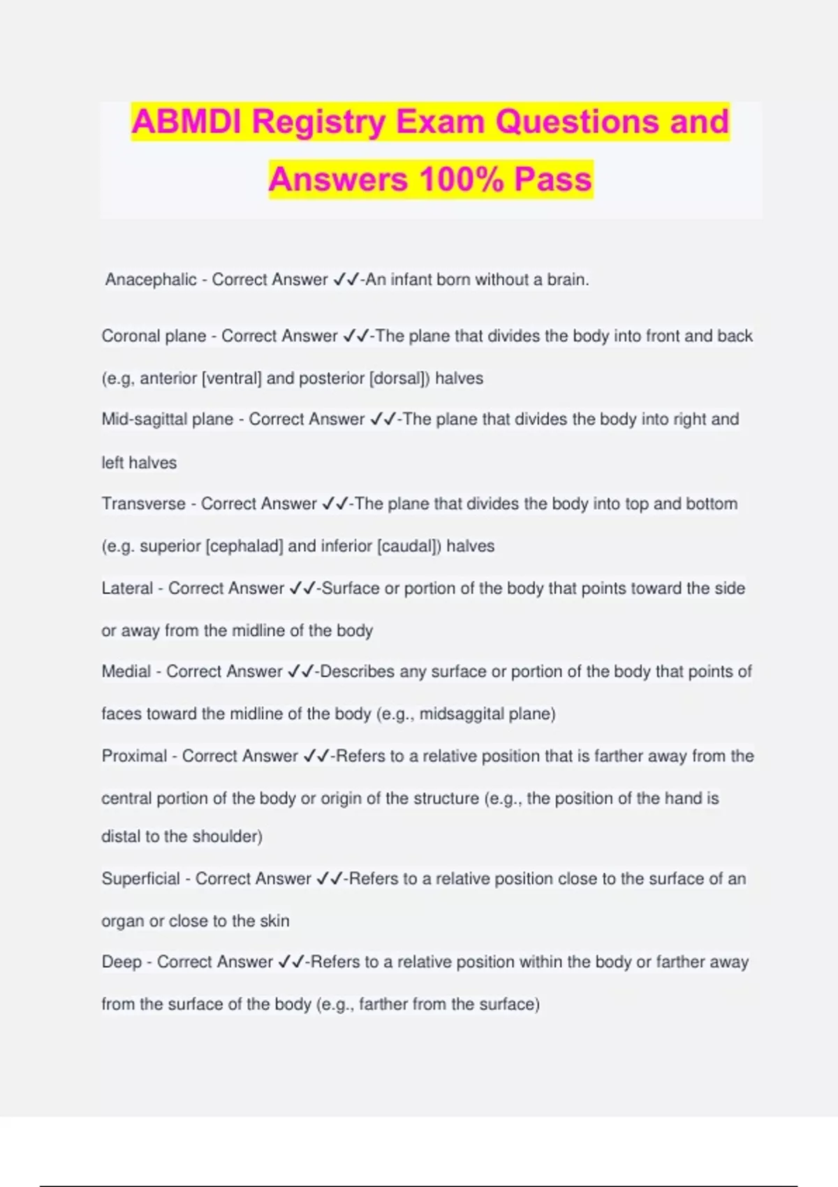 ABMDI Registry Exam Questions and Answers 100% Pass