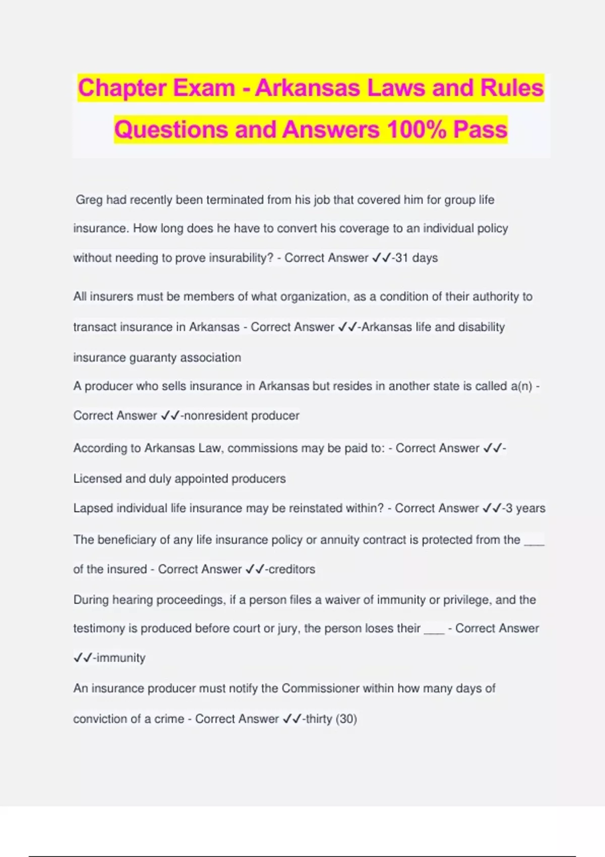 Arkansas Life Insurance Exam Questions and Answers 100% Pass