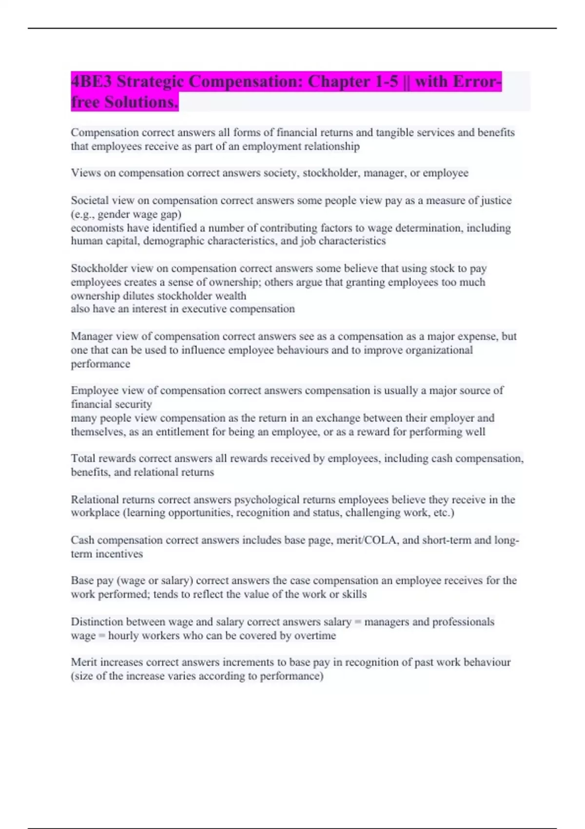 4BE3 Strategic Compensation: Chapter 1-5 || with Error-free Solutions. Topic 5: Compensation and Benefits (Regulations, Strategies, and Needs Assessment) || All Answers Are Correct 100%. Strategic Compensation || with 100% Errorless Answers. Strategic Compensation Management: Midterm 1, || very Flawless. Strategic Compensation Final || All Question