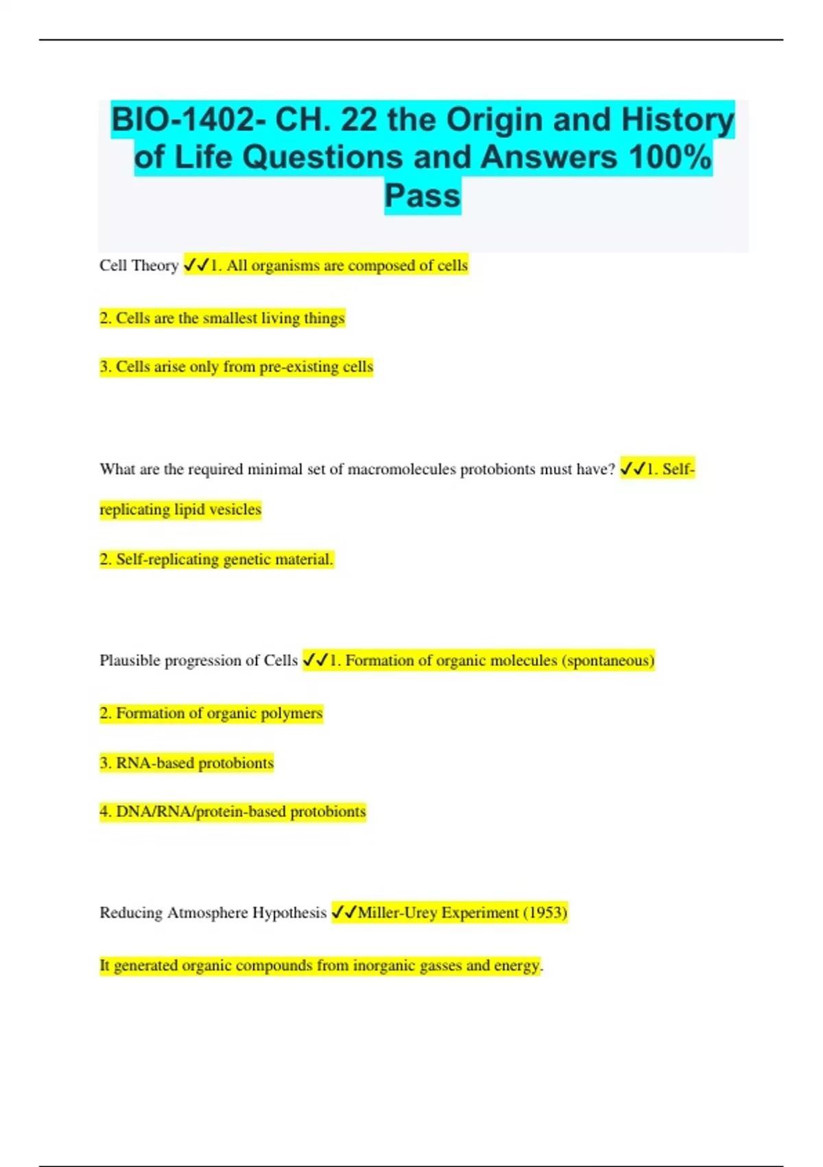 BIO-1402- CH. 22 the Origin and History of Life Questions and Answers 100% Pass