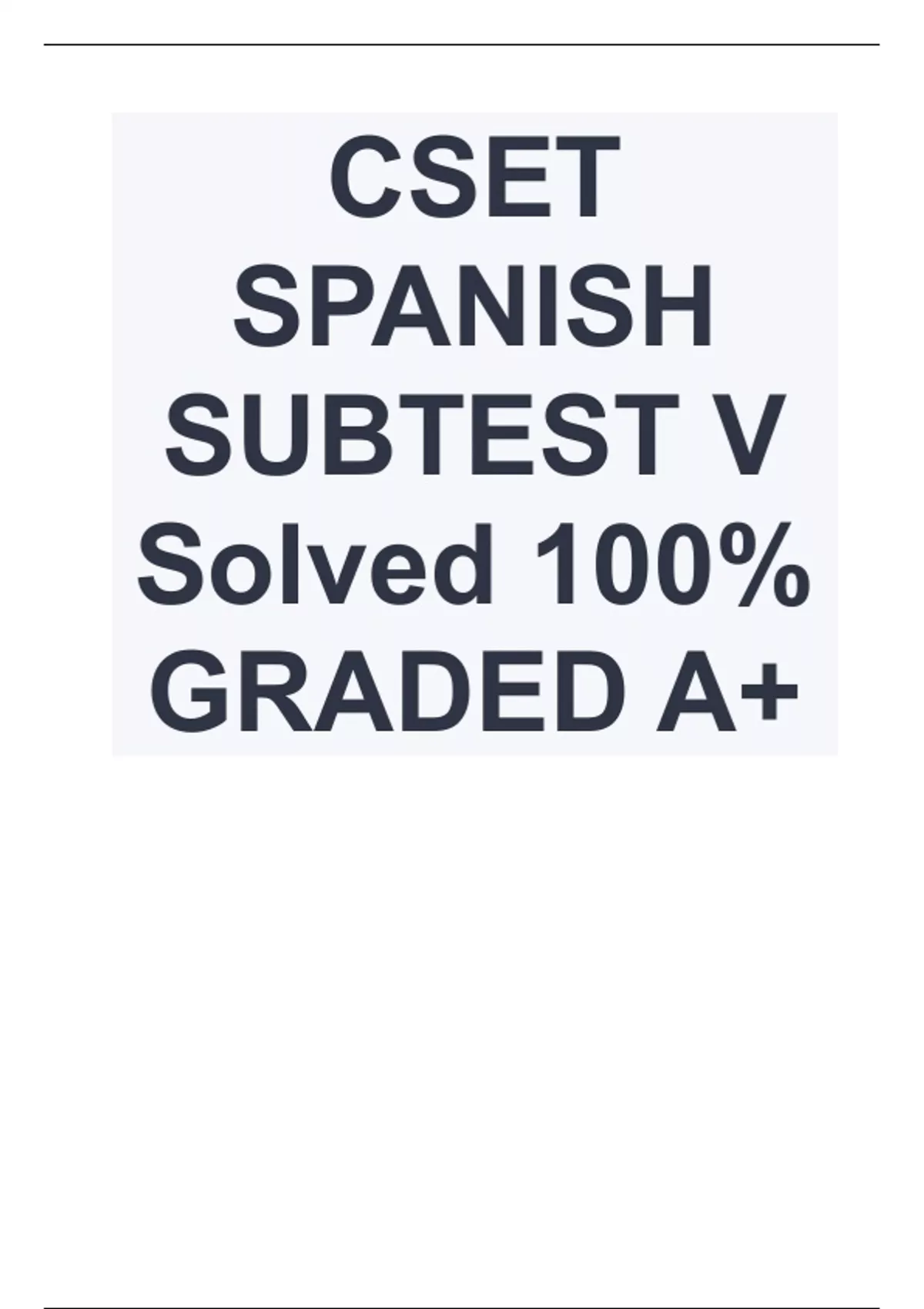 CSET Spanish Subtest 2 Questions and Answers (Verified Answers) Updated 2024/2025