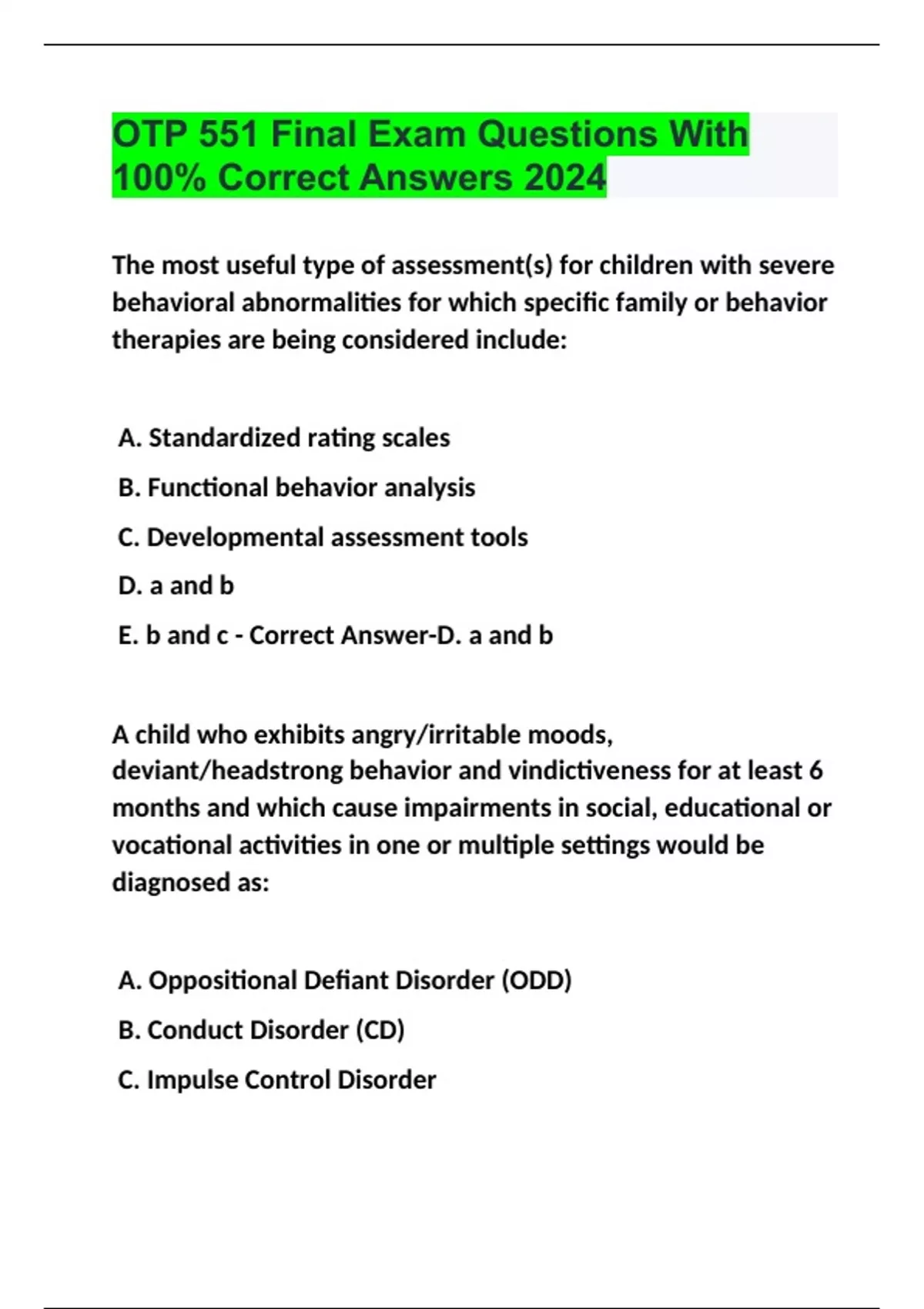 OTP 2 Exam Questions with 100% Correct Answers | Verified | Latest Update 2024 OTP 551 Final Exam Questions With 100% Correct Answers 2024 OTP 1 Final Exam With 100% Correct Answers 2024 OTP 542 EXAM 1 QUESTIONS WITH 100% CORRECT ANSWERS 2024 OTP 540 Test 1 Exam With 100% Correct Answers 2024 OTP 531 Exam 1 With 100% Correct Answers 2024