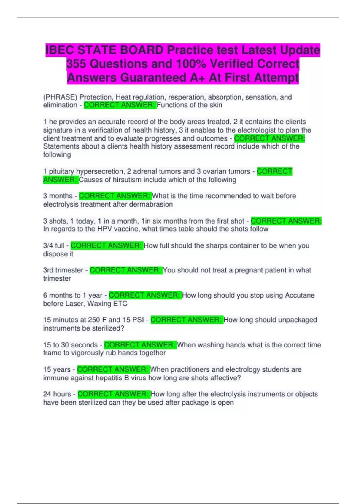 IBEC ELECTROLOGY STUDY GUIDE ,BEC CERTIFIED CLINICAL ELECTROLOGIST EXAM FLORIDA, IBEC STATE BOARD PRACTICE TEST