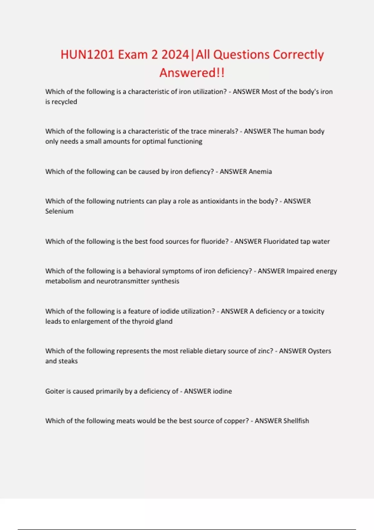 HUN1201 Exam 2024|Questions with Complete Solutions