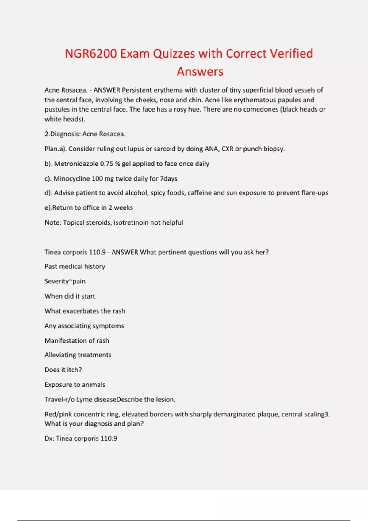 NGR6200 Dermatology Questions with Complete Solutions Latest Update 2024