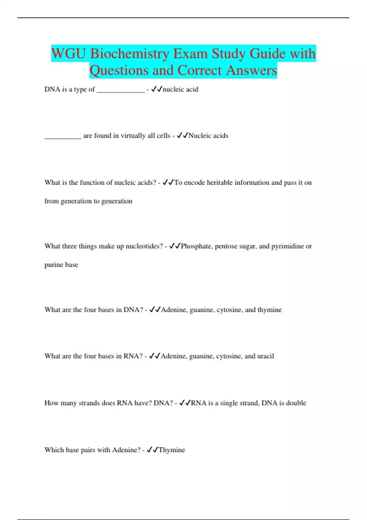WGU Biochemistry EXAMS BUNDLE ~ Questions with 100% Correct Answers/Already Grade A+
