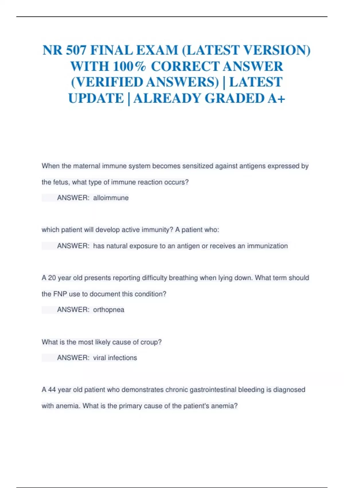 NR 507 FINAL EXAM (LATEST VERSION) WITH 100% CORRECT ANSWER (VERIFIED ANSWERS) | LATEST UPDATE | ALREADY GRADED A+NR 507 FINAL EXAM (LATEST VERSION) WITH 100% CORRECT ANSWER (VERIFIED ANSWERS) | LATEST UPDATE | ALREADY GRADED A+
