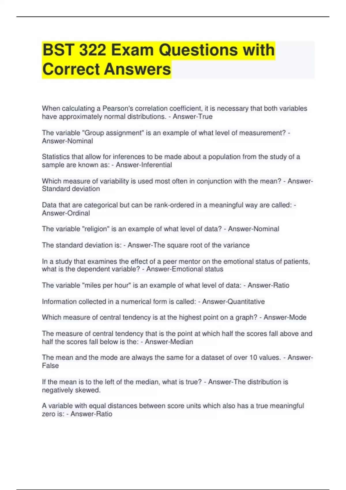 Exam (elaborations) BST322 Week 1 Test Questions with Correct Answers 2 Exam (elaborations) BST 322 Week 4 Test Questions with Correct Answers 3 Exam (elaborations) BST 322 Week 3 Test Questions with Correct Answers 4 Exam (elaborations) BST 322 Week 2 Test Questions with Correct Answers 5 Exam (elaborations) BST 322 Unit 1 Test Questions with