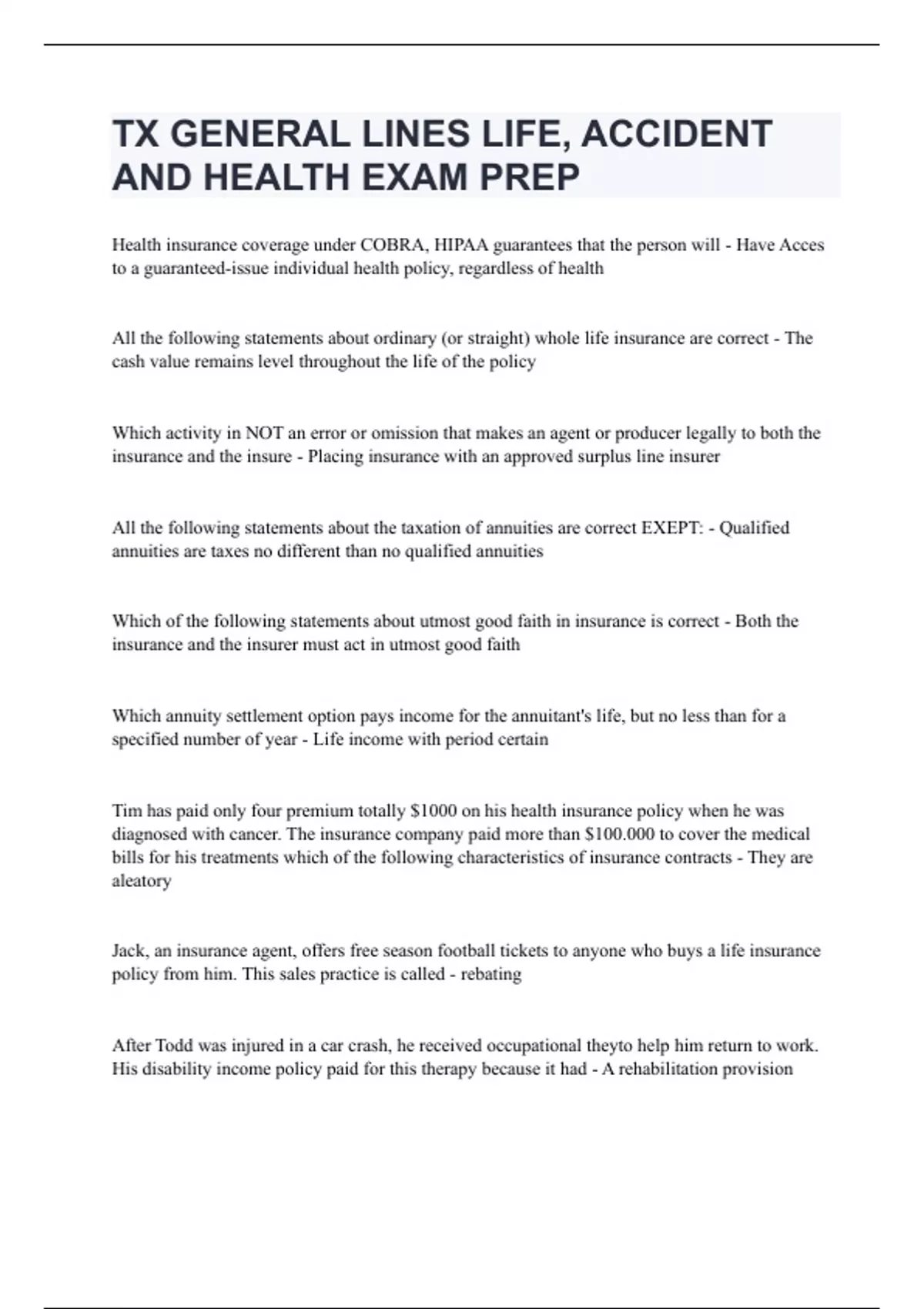 PACKAGE DEAL FOR TX GENERAL LINES LIFE, ACCIDENT AND HEALTH EXAM