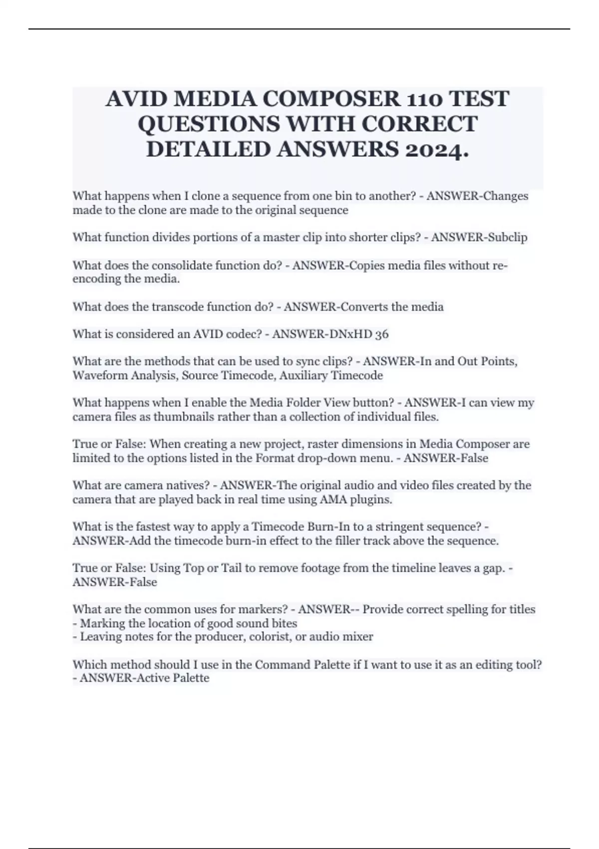 AVID MC 110 EXAM, LATEST REAL QUESTIONS WITH CORRECT DETAILED ANSWERS 2024. ALREADY GRADED A+ AVID MEDIA COMPOSER 110 QUESTIONS WITH CORRECT DETAILED ANSWERS. AVID MC110 EXAM 2024 QUESTIONS WITH CORRECT DETAILED ANSWERS. MC 110: AVID CERTIFICATION QUESTIONS AND ANSWERS 2024. AVID MC 110: CERTIFICATION EXAM QUESTIONS WITH CORRECT DETAILED ANSWERS.