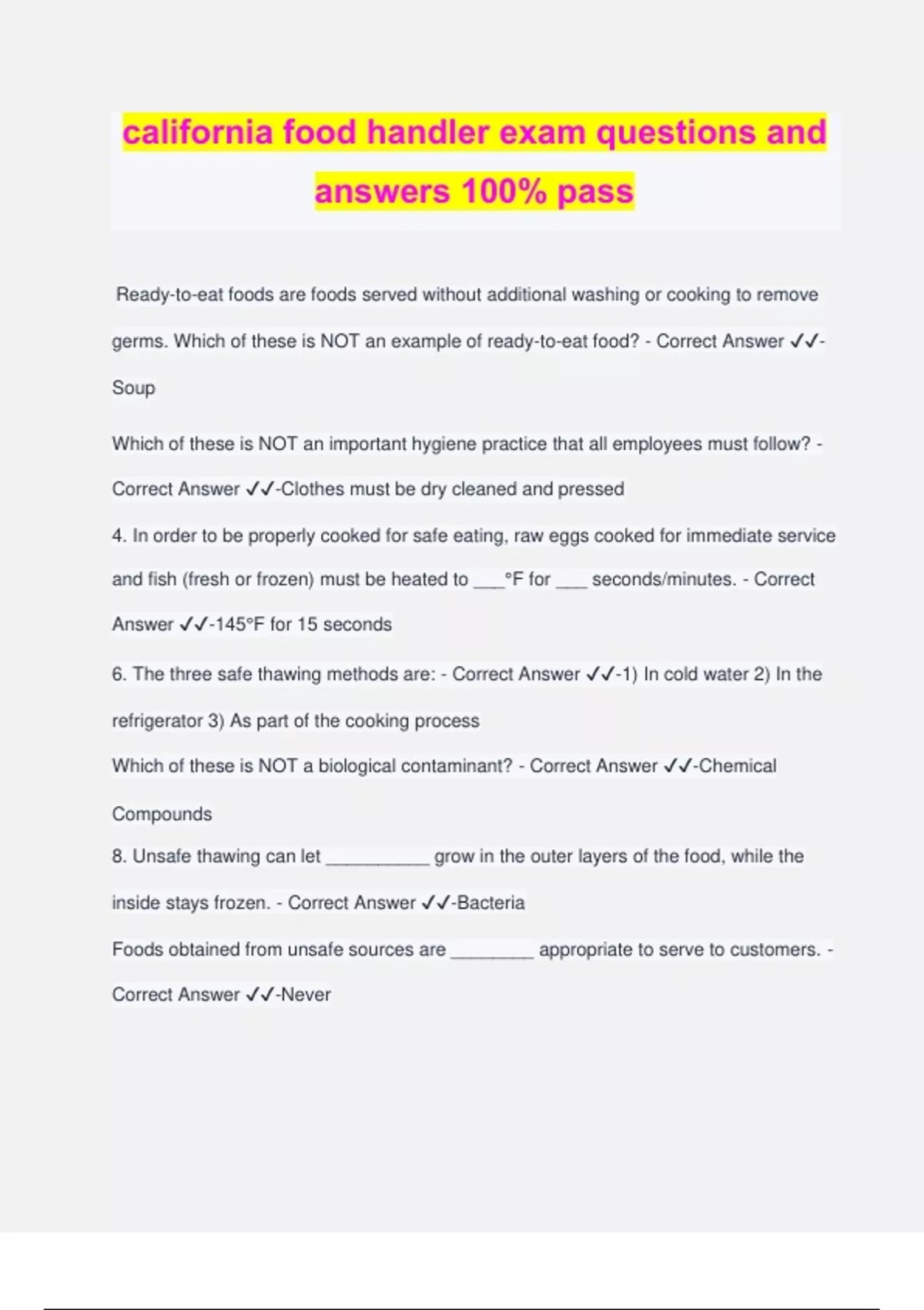 Food Handler Bundled Exams Questions and Answers 100% Verified and Updated | Graded A+