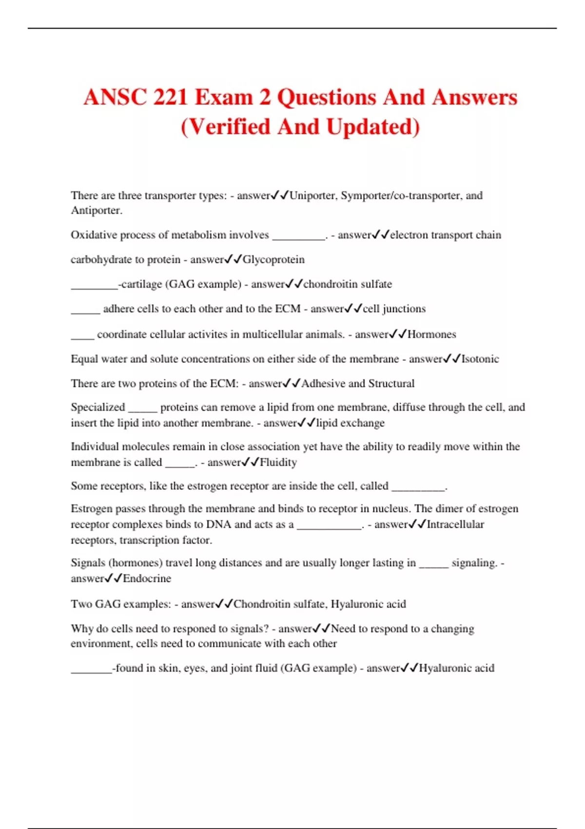 ANSC 221 Exam 2 Questions And Answers (Verified And Updated)