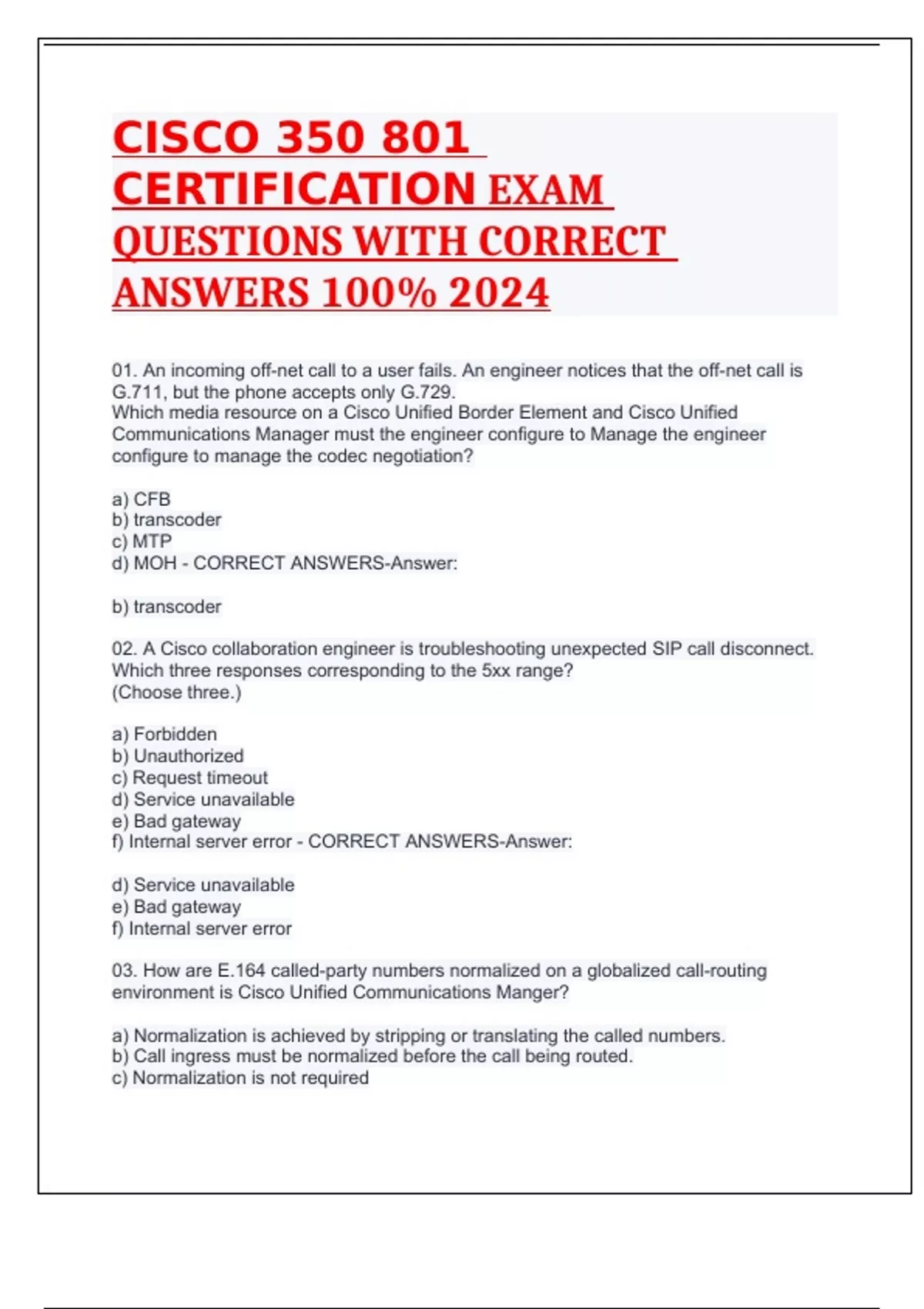 Package deal for CISCO 350 801 CERTIFICATION EXAM QUESTIONS WITH CORRECT ANSWERS 100% 2024