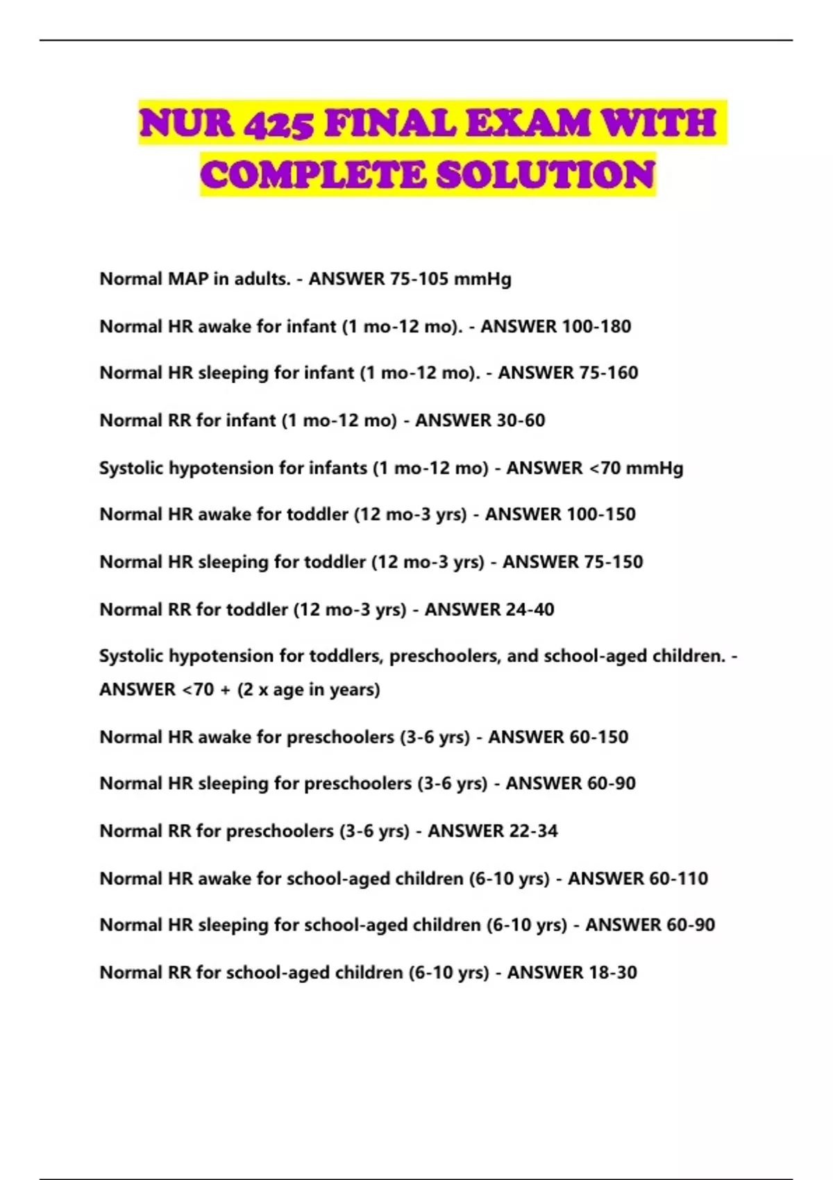 NUR 425 Pediatrics Exam 1 With Complete Solution