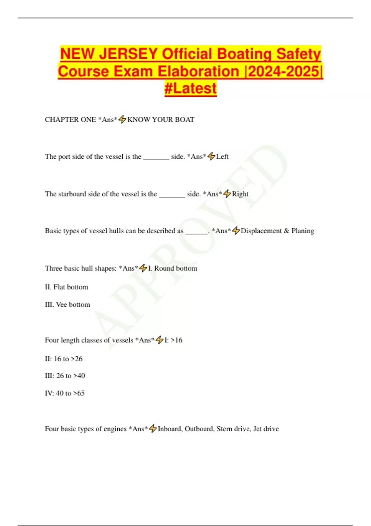 Test Bank #1 NJ Boating |PACKAGE DEAL|