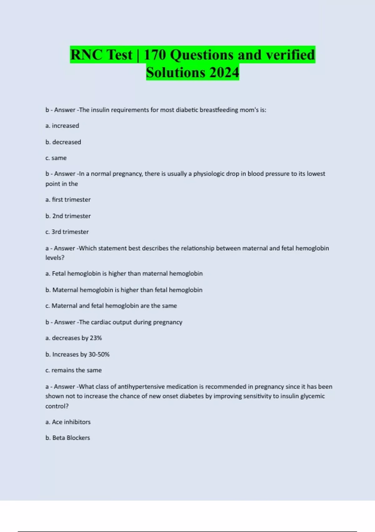 Bundle for RNC OB Exams Correctly Answered 2024 | 2025. Actual tests, Inpatient obstetrics exam, RNC test, RNC-MNN, RNC OB, RNC-NIC, Exam review,
