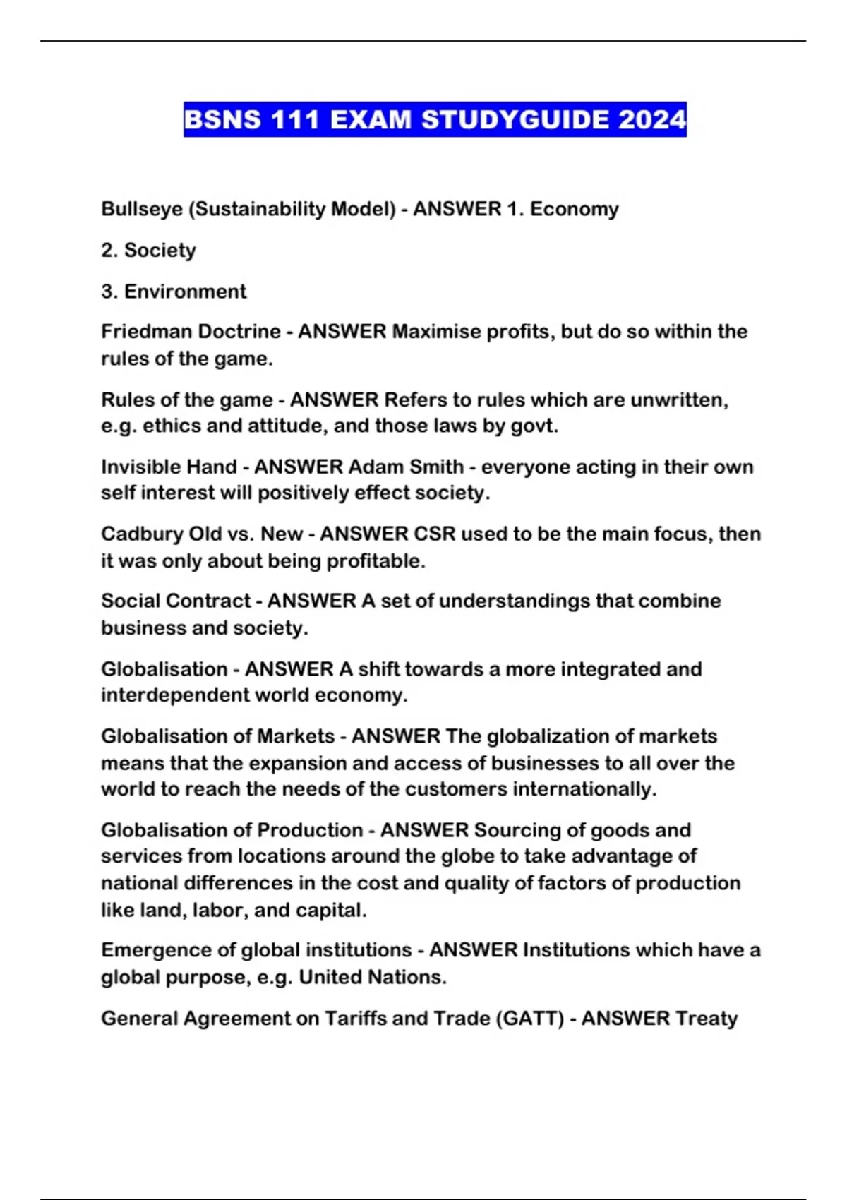 BSNS 111 EXAM STUDYGUIDE 2024