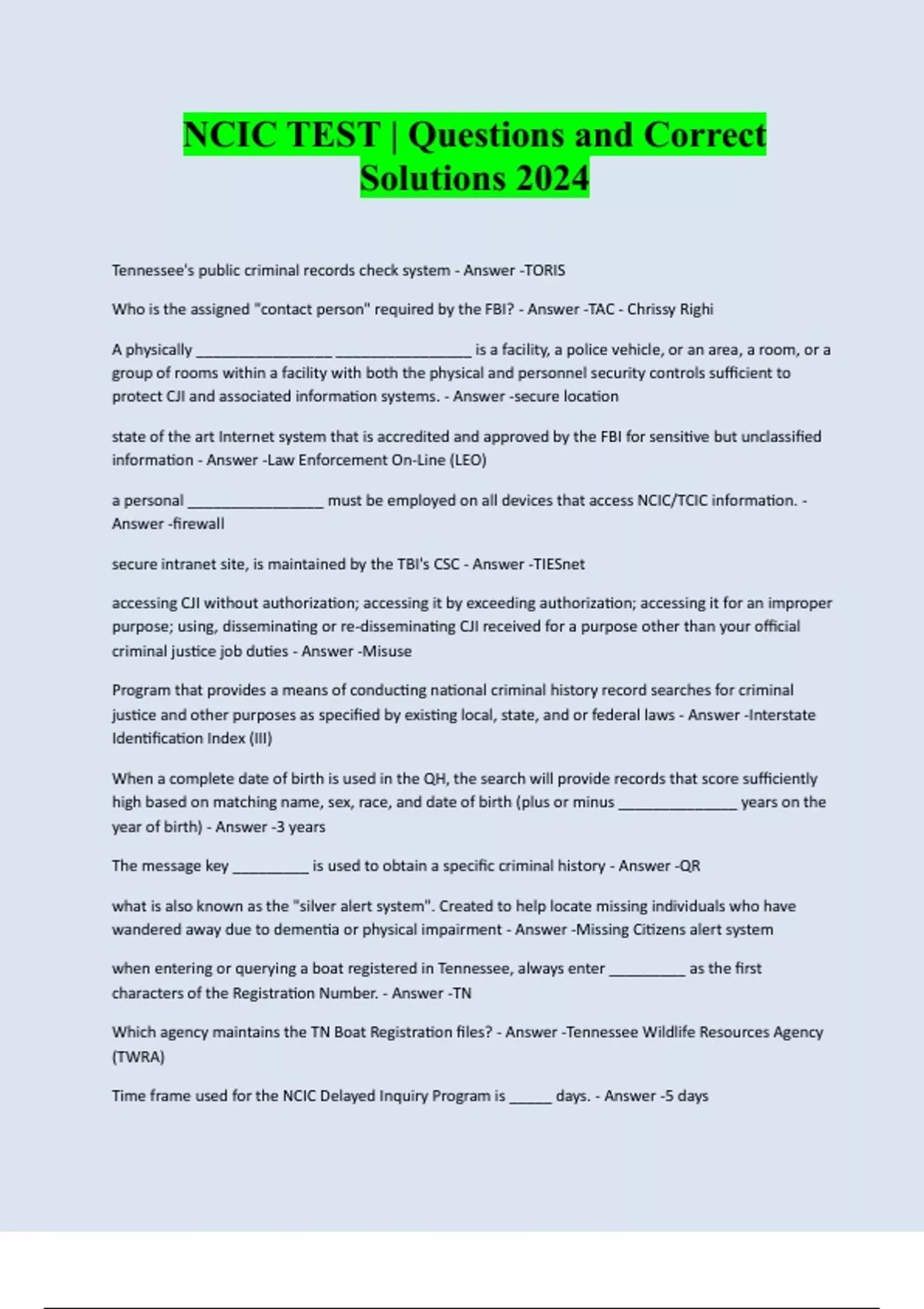 Bundle for NCIC/TCIC Exams with verified Solutions 2024 | 2025
