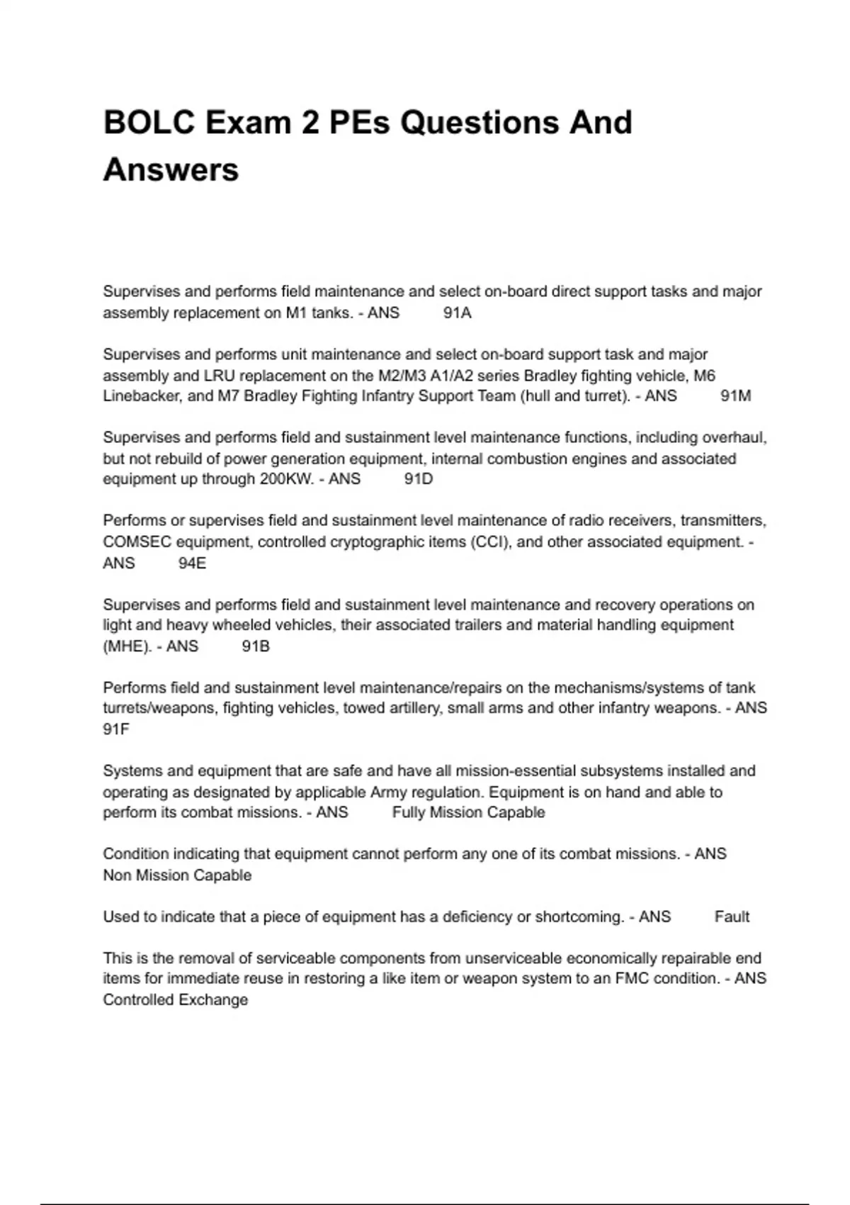 BOLC Exam 2 PEs Questions And Answers Package Deal