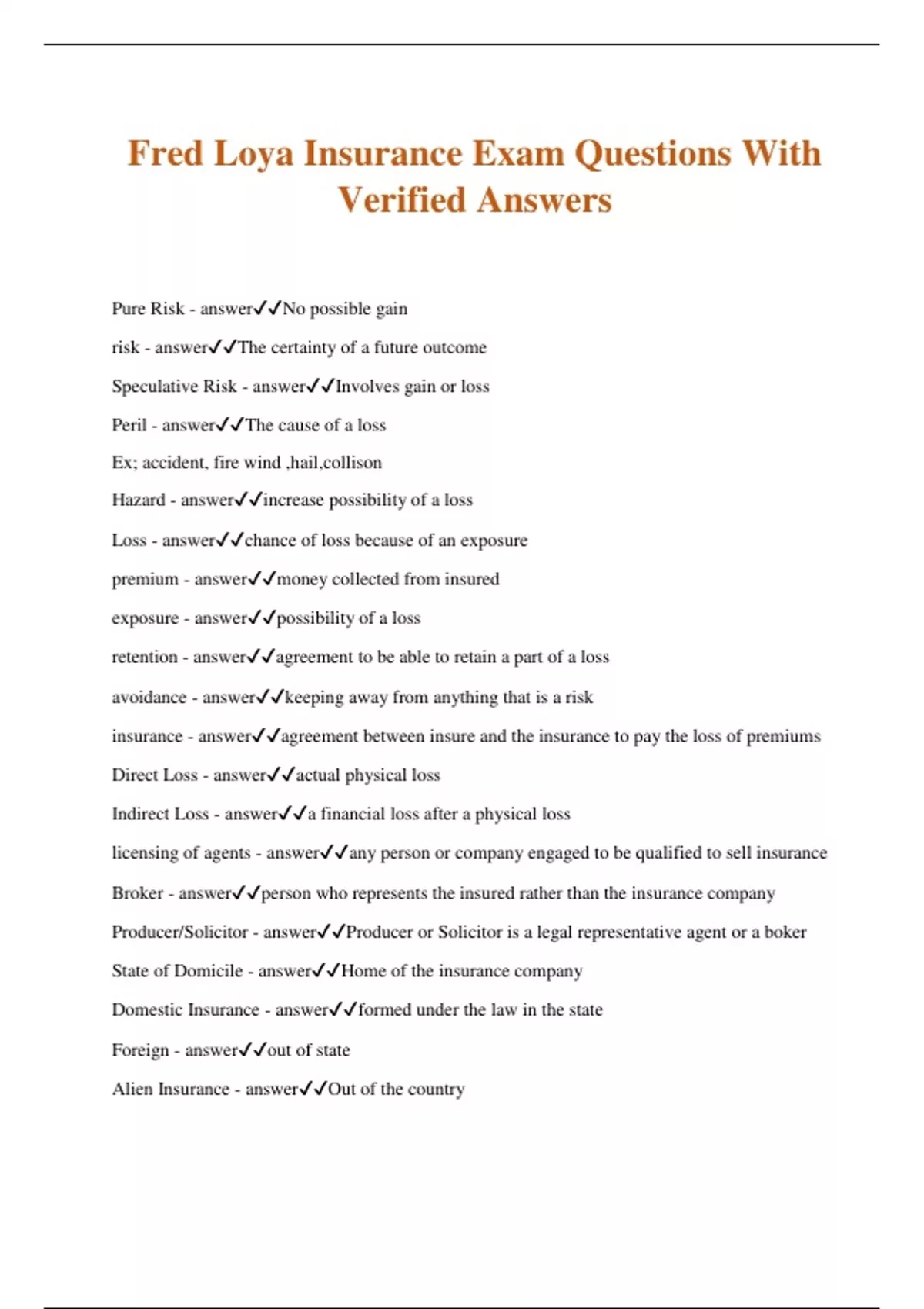 Fred Loya Insurance Exam Questions With Verified Answers