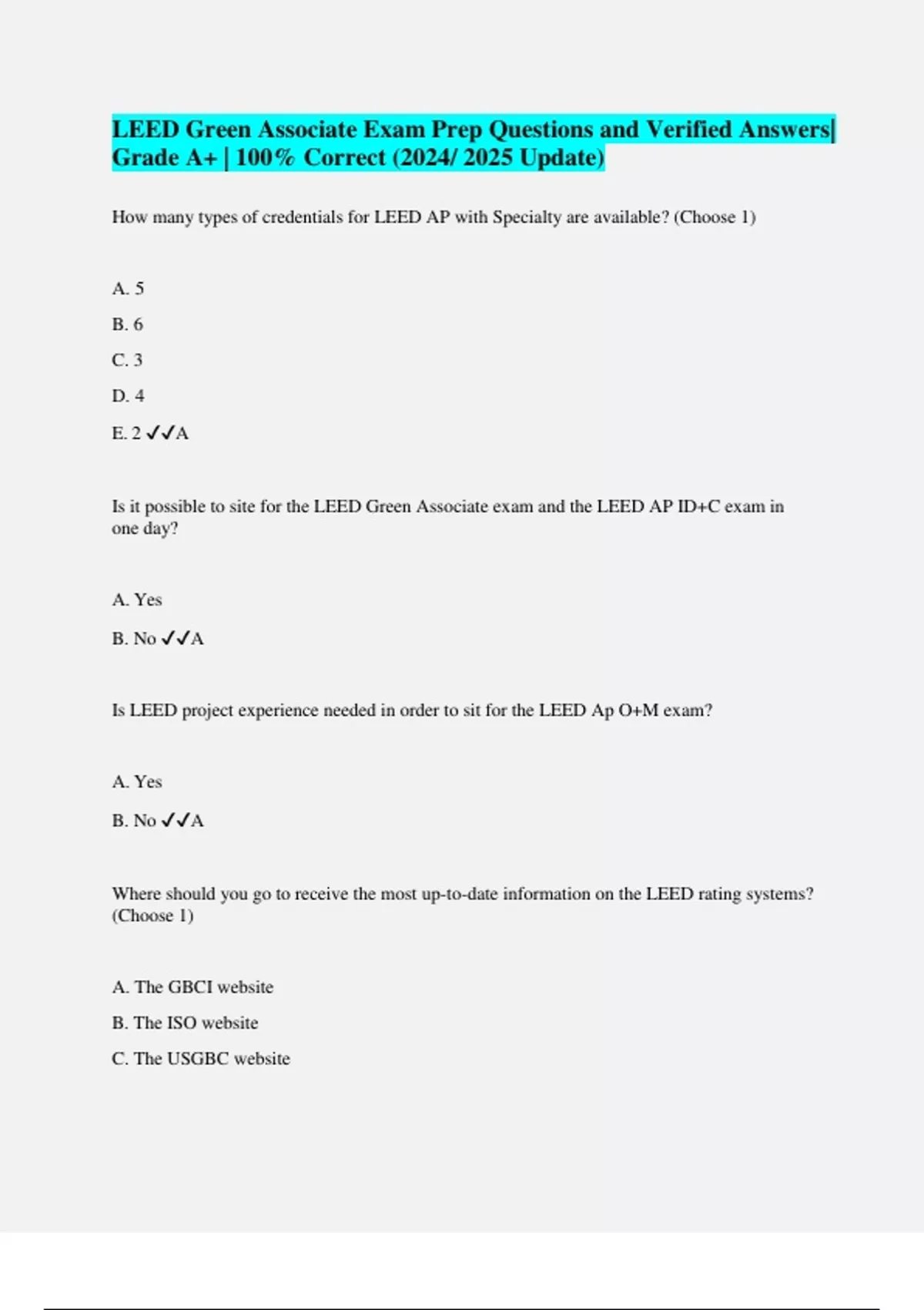 BUNDLE:: LEED Green Associate Exams Questions and Verified Answers| Grade A+ | 100% Correct (2024/ 2025 Update)