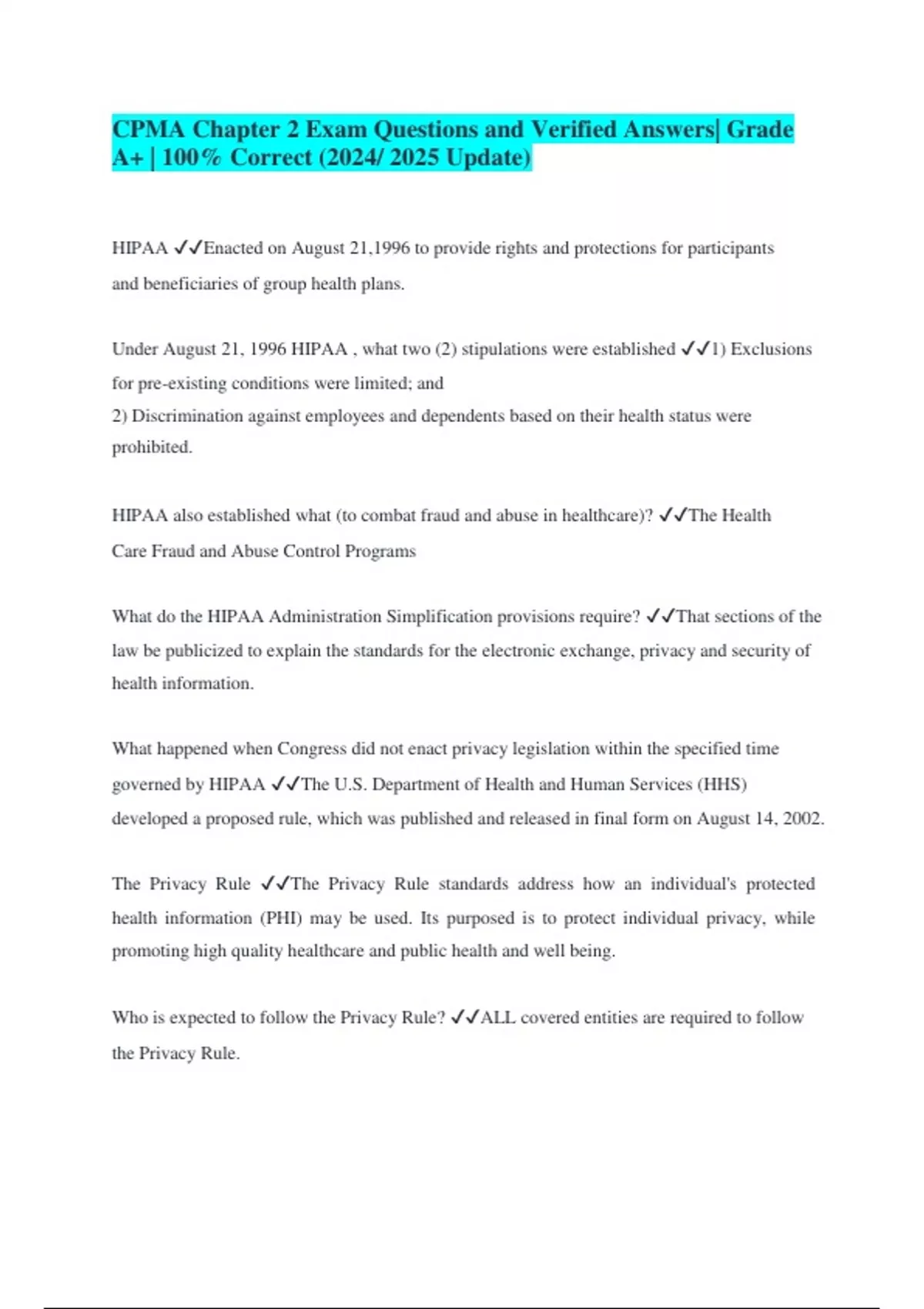 CPMA Certification Test Questions and Verified Answers| Grade A+ | 100% Correct (2024/ 2025 Update)
