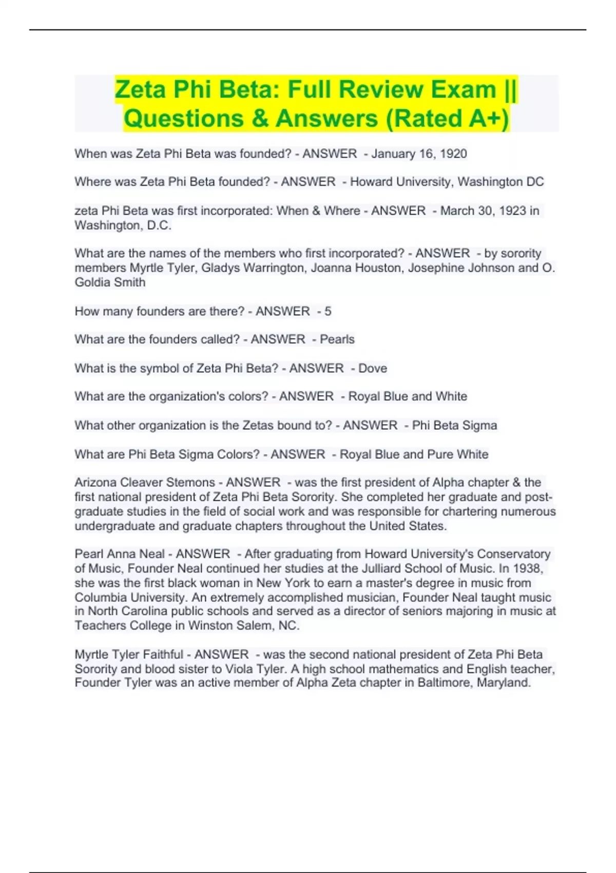 Zeta Phi Beta Fraternity Initiation Comprehensive Test BUNDLE || With Complete Questions & Answers (Rated A+) Zeta Phi Beta Fraternity Initiation Comprehensive Test BUNDLE || With Complete Questions & Answers (Rated A+)