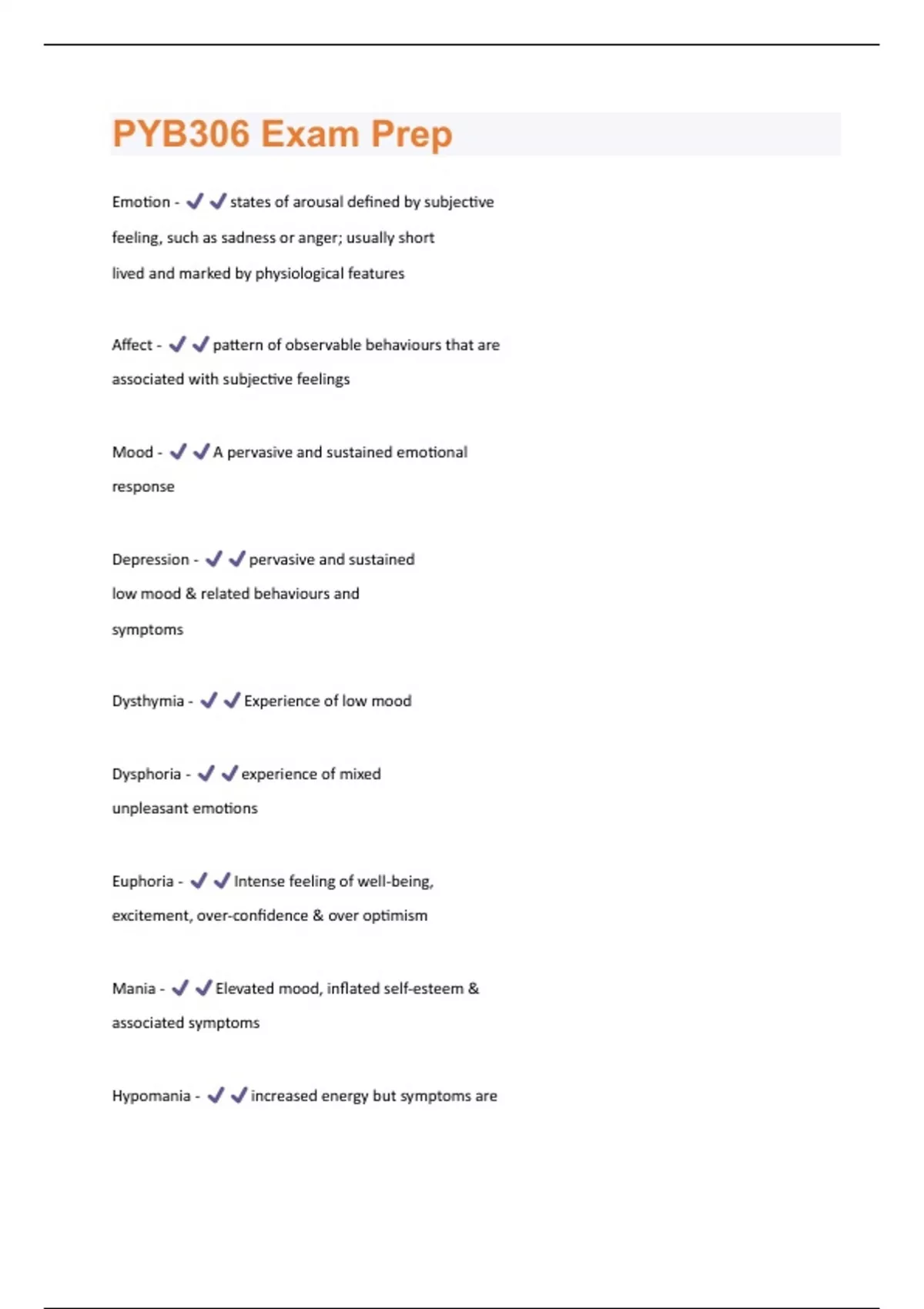 PYB306 Psychopathology Final Exam Questions with 100 % correct answers | verified
