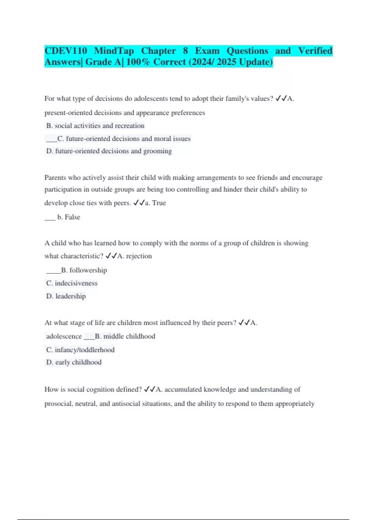 CDEV Final Exam Review Questions and Verified Answers| Grade A| 100% Correct (2024/ 2025 Update)