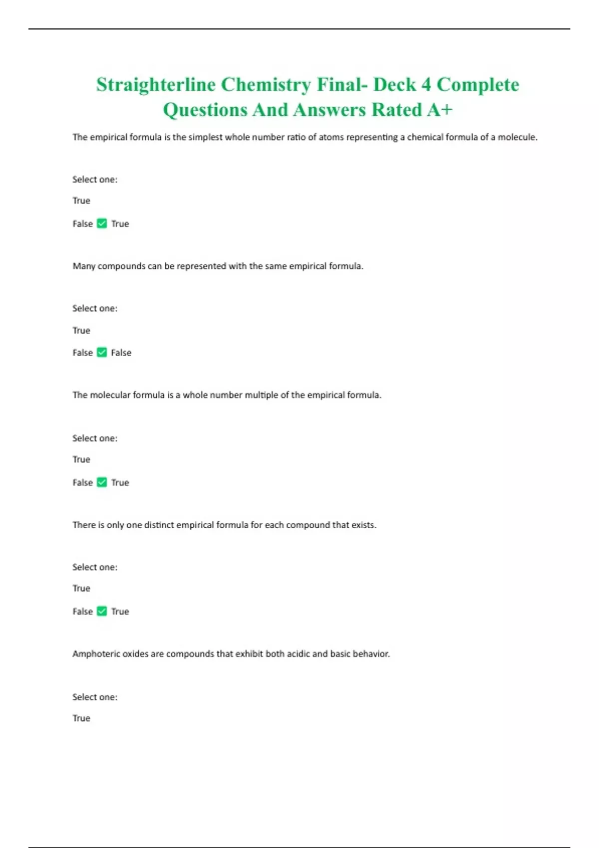 Straighterline Chemistry Package Deal With Complete Study Questions And Answers