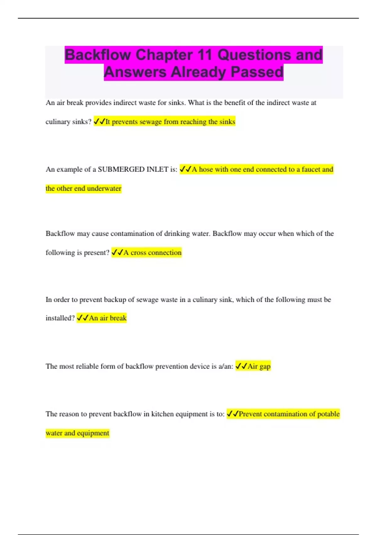 Backflow Bundled Exams Questions and Answers Latest Versions (2024/2025) (Verified Solutions)